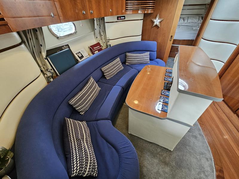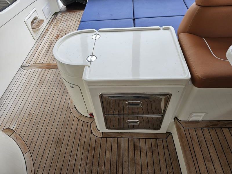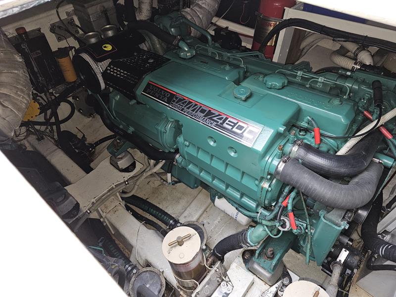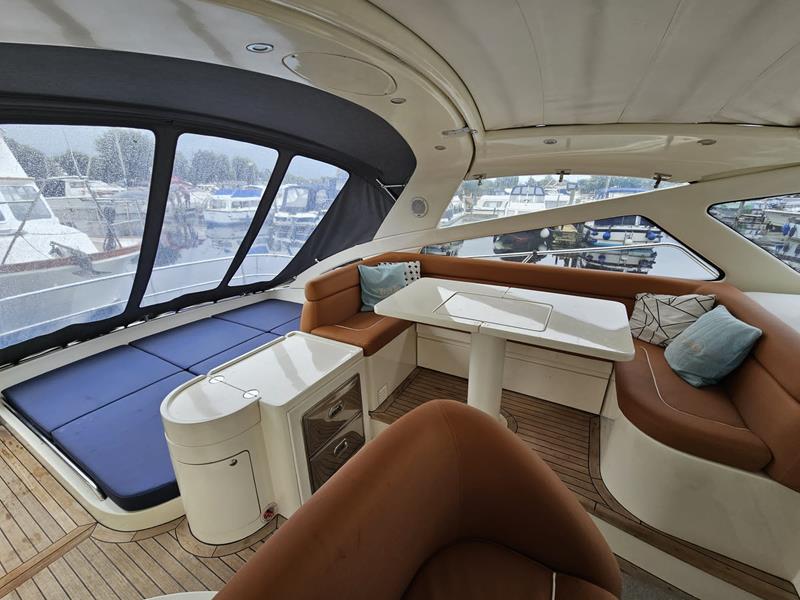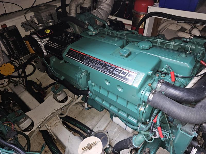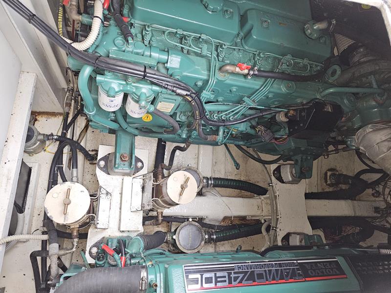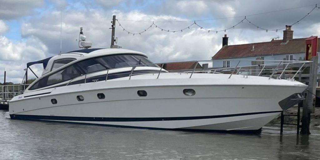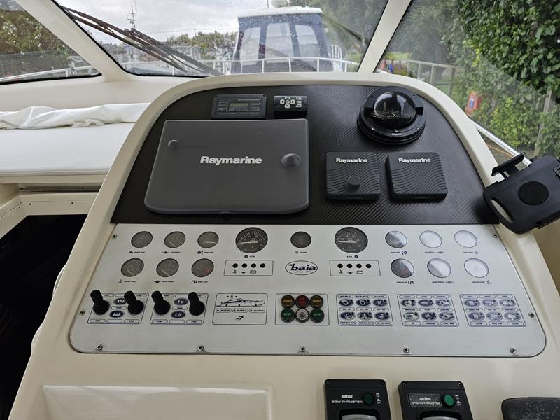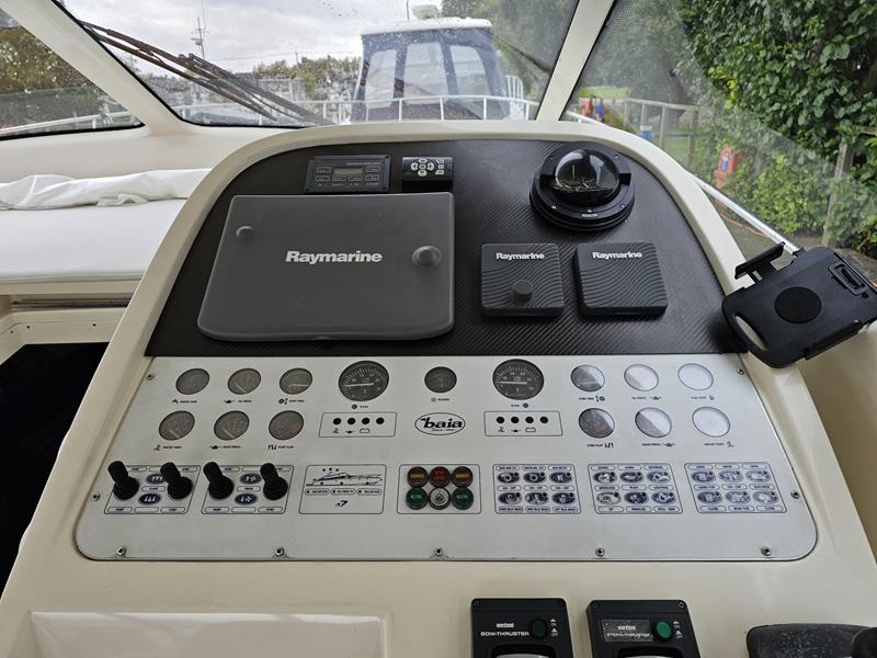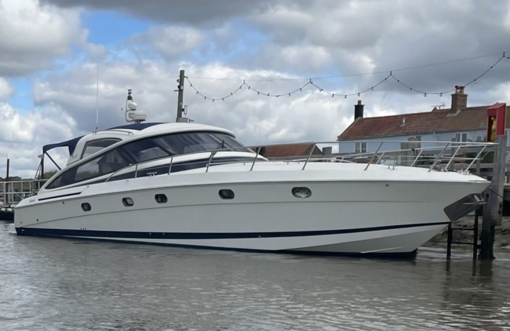 BAIA FLASH 48 – 1999 2x Volvo Penta TAMD 74P-A 480hp diesel engines through Arneson surface drives. 5 berth accommodation with two toilets and showers complete with a separate shower compartment. Specification to include; Raymarine C120 multi-function chart plotter and radar, battery charger, inverter, bow & stern thrusters, Raymarine autopilot, new upholstery to the cockpit, Webasto heating, Air con, davit system with electric winch, shore power, opening sunroof and trim tabs. Recent maintenance during May 2023; Antifoul, props coated, new anodes, full engine service and hull polish. A stunning sports cruiser with a performance to complement its stylish Italian looks. A rare sight to see in the UK!
