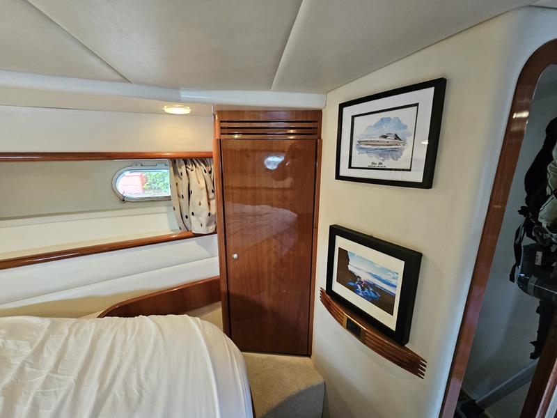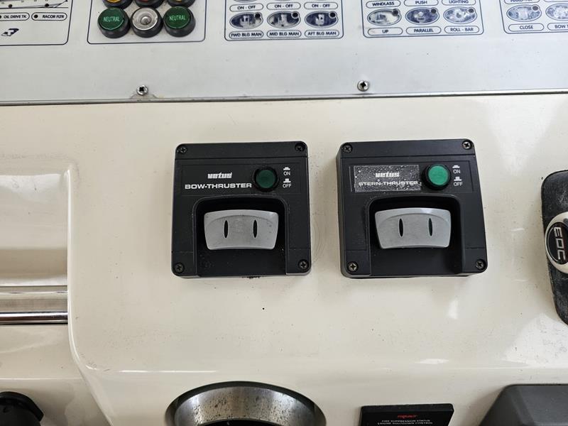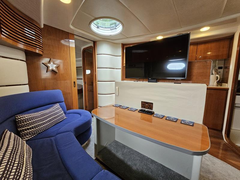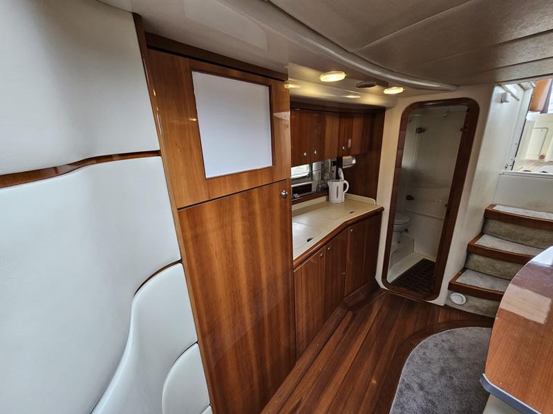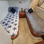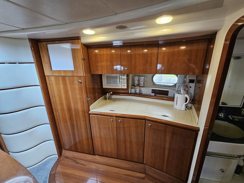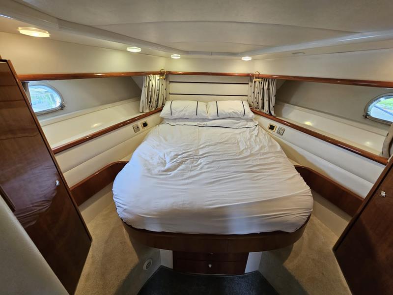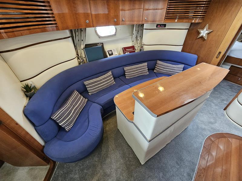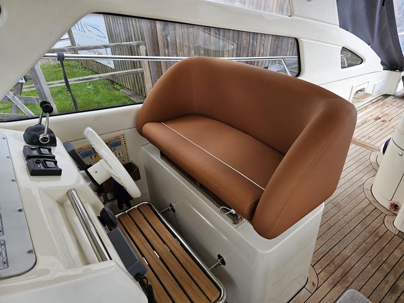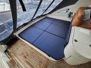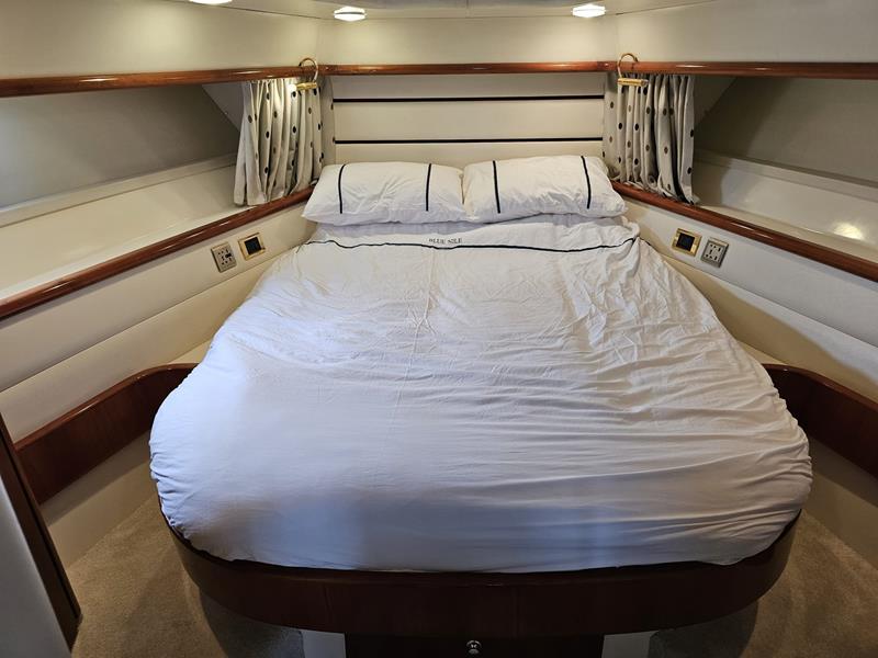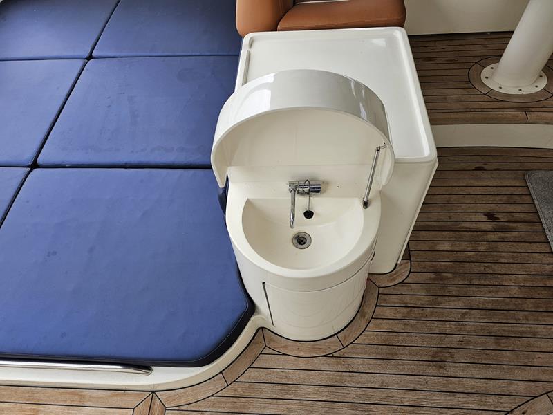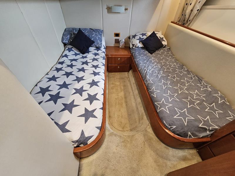 BAIA FLASH 48 – 1999 2x Volvo Penta TAMD 74P-A 480hp diesel engines through Arneson surface drives. 5 berth accommodation with two toilets and showers complete with a separate shower compartment. Specification to include; Raymarine C120 multi-function chart plotter and radar, battery charger, inverter, bow & stern thrusters, Raymarine autopilot, new upholstery to the cockpit, Webasto heating, Air con, davit system with electric winch, shore power, opening sunroof and trim tabs. Recent maintenance during May 2023; Antifoul, props coated, new anodes, full engine service and hull polish. A stunning sports cruiser with a performance to complement its stylish Italian looks. A rare sight to see in the UK!