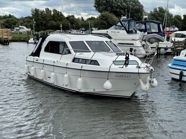 BARNES RENAISSANCE 31 – 1995 – Powered by twin Nanni 4-190HE 43hp diesels through shafts – 4 berth accommodation with toilet and shower – Specification to include; Warm air heating, bowthruster, electric windlass, inverter, shore power supply with battery charger and 240v supply, holding tank. Engine service 2021. A well specified river cruiser with shaft and diesel economy. Presented in very good order throughout, clearly loved and well kept by current owners!