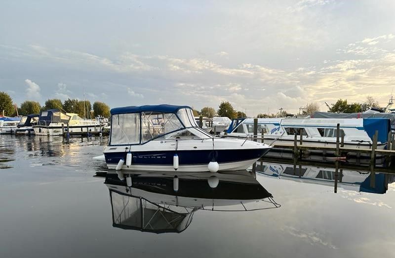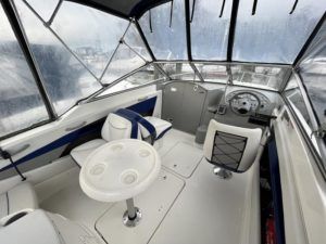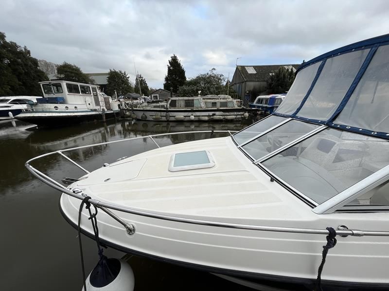 Bayliner 192 Discovery – 2007 – Powered by a Mercruiser 135HP Petrol Engine – 2 berth cuddy cabin, electric bilge pump, Fishfinder 90, bilge blower, cushioned cockpit seating and table. Polished and Antifouled 10/23. A well presented sports cruiser with sleek lines and a reputation for great performance.