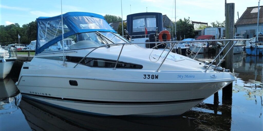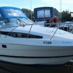 Bayliner 2355 – Circa 1995 – Powered by a Mercruiser 4.3l 190hp petrol engine. 4 berth accommodation with a separate toilet compartment. Specification to include; trim tabs, VHF, shore power supply with 240v sockets. Full tank of fuel, Low air draft for river cruising. BSC 2027. An exciting sports cruiser with a social cockpit for day entertaining and easy boarding.