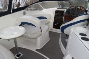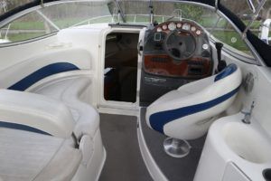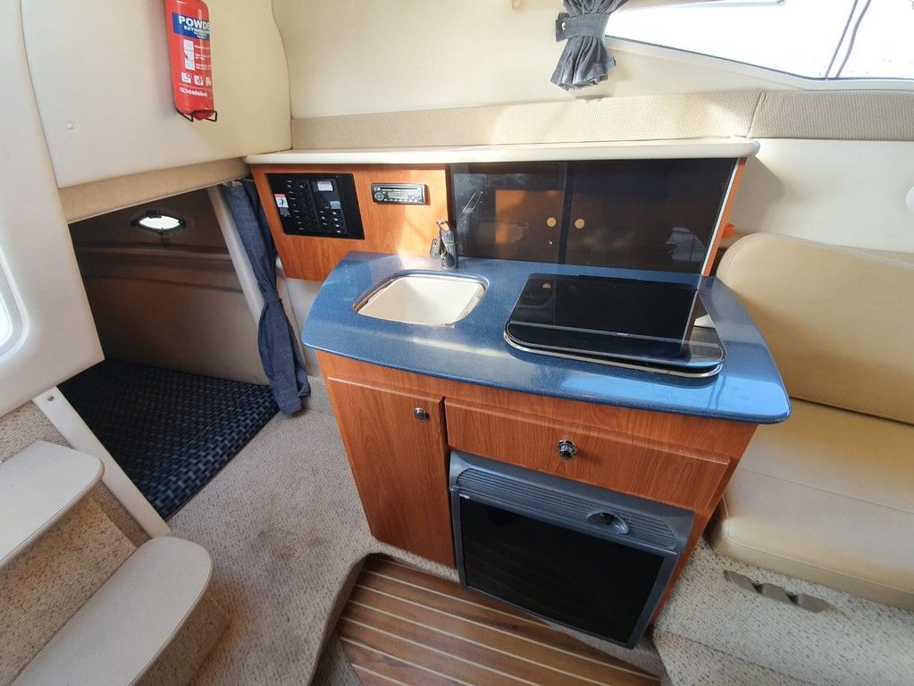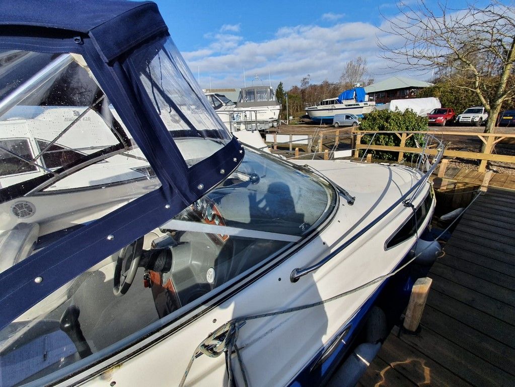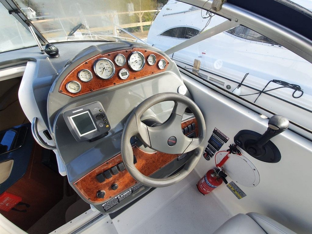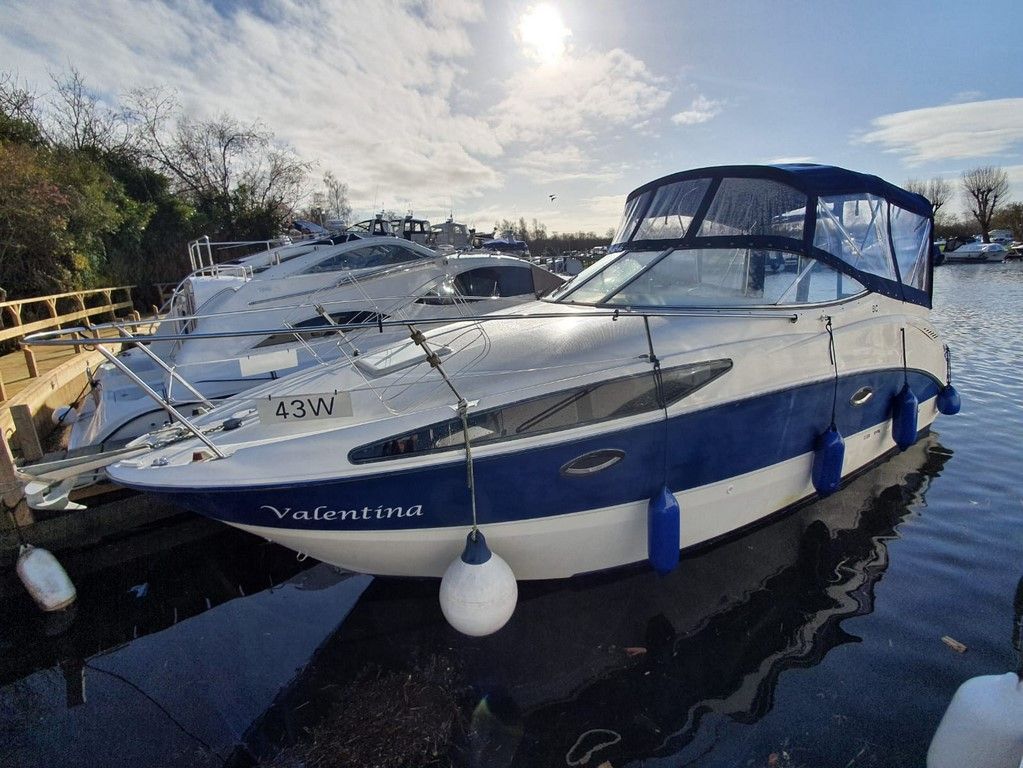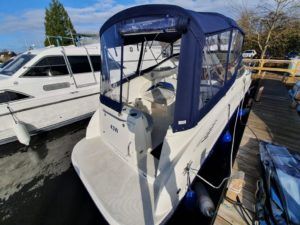 BAYLINER 265 – 2005 build first commission 2006 – Powered by a single Mercruiser 5.0l 220hp petrol through a sterndrive. Specification to include; Shore power with 240v sockets and battery charger, holding tank, trim tabs, calorifier. New canopy 2020 and engine service. Drive service and antifoul 2019. A well maintained stylish sports cruiser, owned from new by current owner!