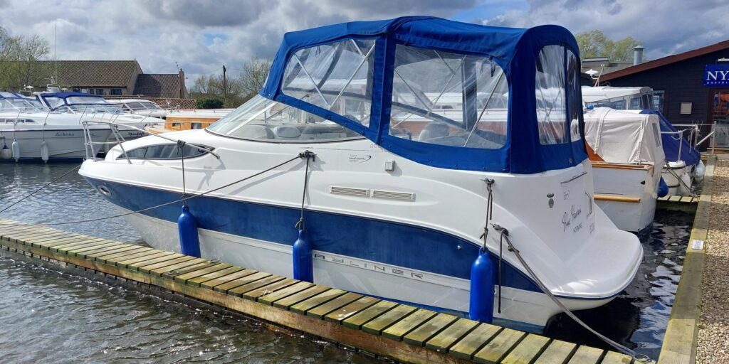 Bayliner 265 – 2003 – Single Volvo Penta KAD32 170hp diesel engine through a sterndrive. Up to 6 berth accommodation with a single toilet and shower compartment; Specification to include; warm air heating, electric windlass, chart plotter, VHF radio. “Blue Hawaii” is a one owner boat from new and has clearly been cared for. She comes with the desirable diesel engine option, making her an economical craft, ideal for cruising the Broads or for taking off-shore. More details and pictures to follow. BSC March 2028