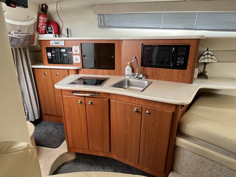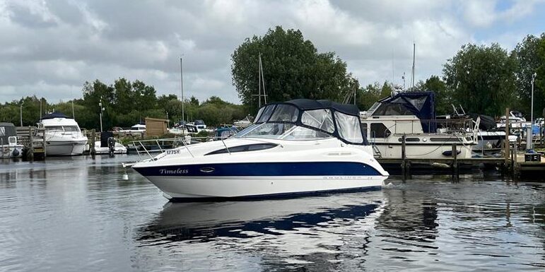 Bayliner 265 – 2004 – Powered by a Volvo Penta KAD32 170hp diesel engine through a sterndrive. 6 berth accommodation with a separate toilet and shower compartment; Specification to include; Bow thruster, warm air heating, chart plotter, holding tank, shore power, battery charger and more. Engine and outdrive service 2025. Antifouled 2025. BSC 2026. Highly desirable diesel engine option, generous spec, and fully prepared for the season. Early viewing recommended!