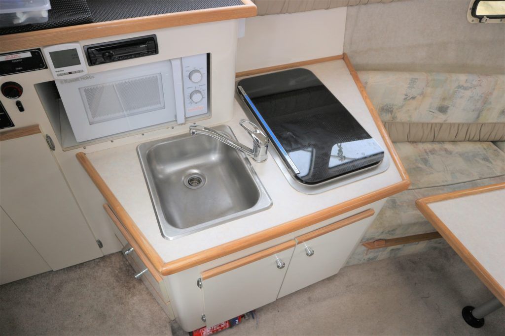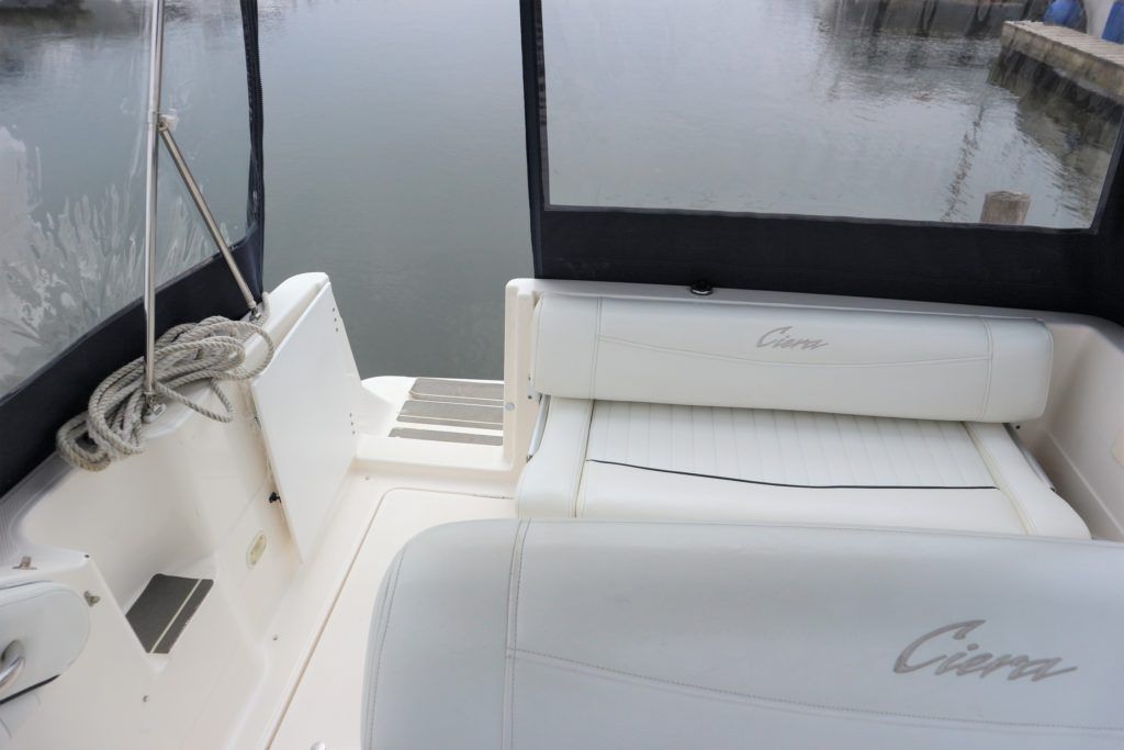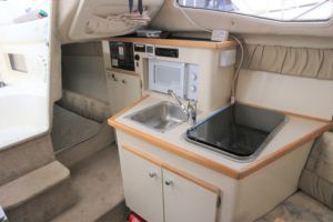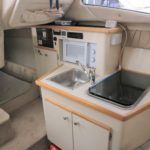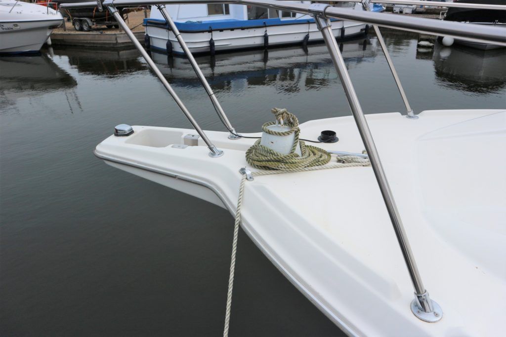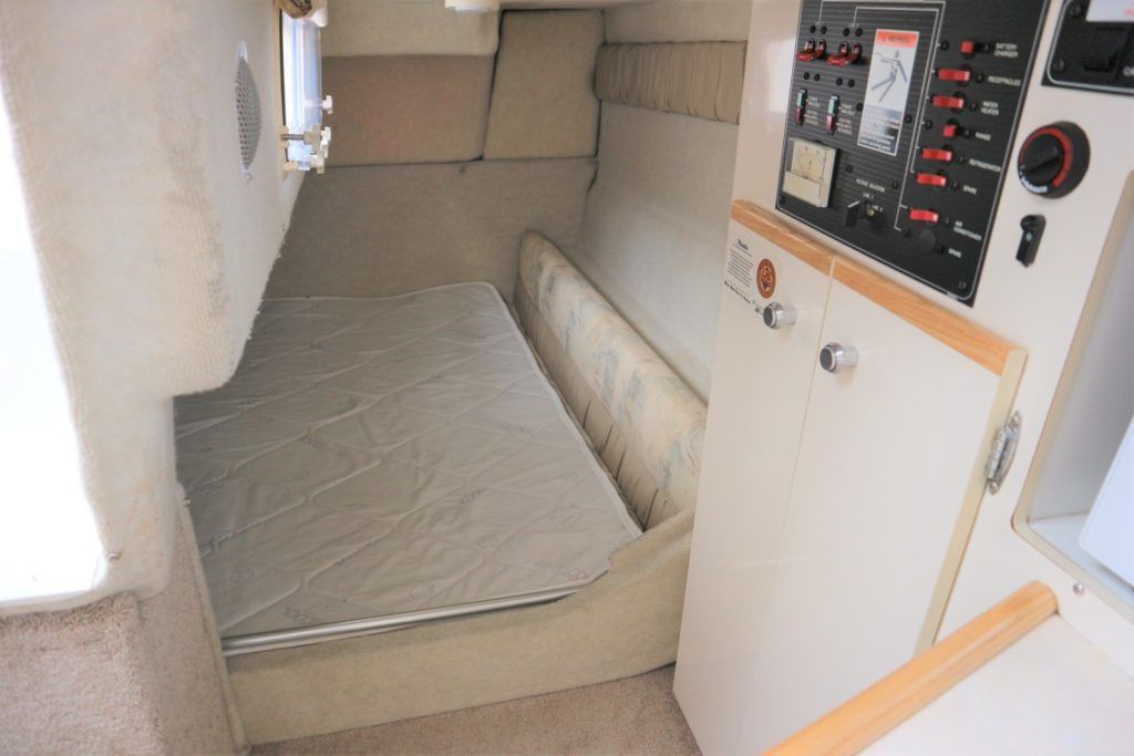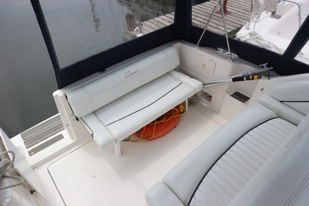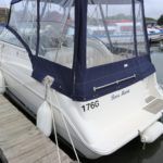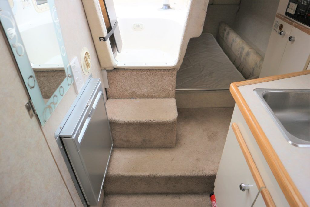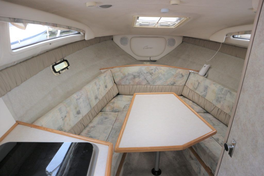 BAYLINER 2655 – 1997 – Powered by a single Yanmar 4LHA-STZP 240hp diesel engine. 4 berth accommodation with one toilet/shower compartment. Well specified to include bow thruster, warm air heating, holding tank, trim tabs, Garmin GPS, shore power supply, battery charger, immersion heater, VHF. A lovely example of these popular sports cruisers benefiting from a diesel engine and great specification. Ideal for coastal cruising or inland with its low air draft.