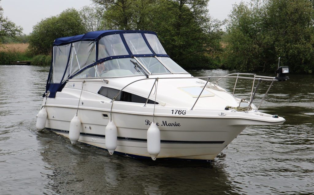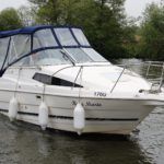 BAYLINER 2655 – 1997 – Powered by a single Yanmar 4LHA-STZP 240hp diesel engine. 4 berth accommodation with one toilet/shower compartment. Well specified to include bow thruster, warm air heating, holding tank, trim tabs, Garmin GPS, shore power supply, battery charger, immersion heater, VHF, BSC 03/23. A good example of these popular sports cruisers benefiting from a diesel engine and great specification. Ideal for coastal cruising or inland with its low air draft.