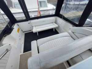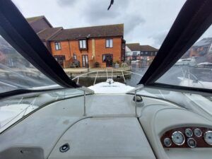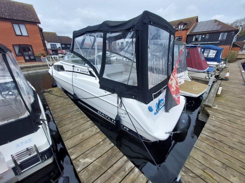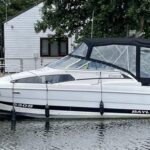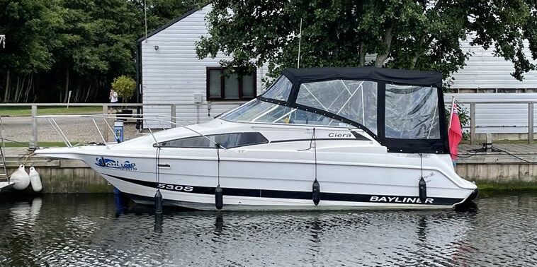 Bayliner 2655 – 1999 – Single Mercruiser 5.7ltr V8 petrol engine through a Bravo 3 sterndrive. 4 berth accommodation with a single toilet & shower compartment. Specification to include; Inverter, VHF radio, battery charger, depth and speed logs, holding tank, recent maintenance includes hull compound and polished, antifouled, engine and sterndrive serviced. “Jahlia B” boasts a very sociable cockpit and has a low airdraft allowing access under most Broads bridges. A perfect boat on which to enjoy the spring/summer. BSC 07/10/24.