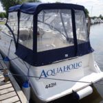 BAYLINER 2655 – 1997 – Single Mercruiser 260HP Petrol Engine. 4 berths with 1 heads to holding tank and 1 shower. Trim tabs, Shore power, Battery charger, 240v sockets. Galley and saloon refit in 2010 including 3 burner gas hob, oven, grill and 12v refrigerator. A well cared for craft with significant updates, benefiting from a recent outdrive service, compound, polish and antifoul.