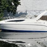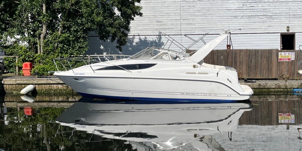 Bayliner 285 – 2003 – Mercruiser 350 MAG MPI (300hp) petrol engine with only 408 hours. 6 berth accommodation with a separate toilet and shower compartment. Specification to include; Shore power, battery charger, holding tank, chart plotter, reverse cycle air conditioning, heaters, immersion, trim tabs and more. BSC expires 04/26. New cockpit canopy & Serviced and antifouled 2024. A well-maintained family sports cruiser with a sociable cockpit and exceptional accommodation for its length.
