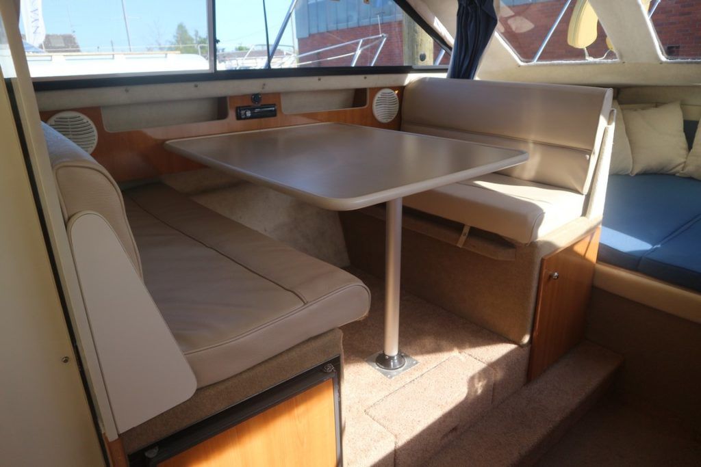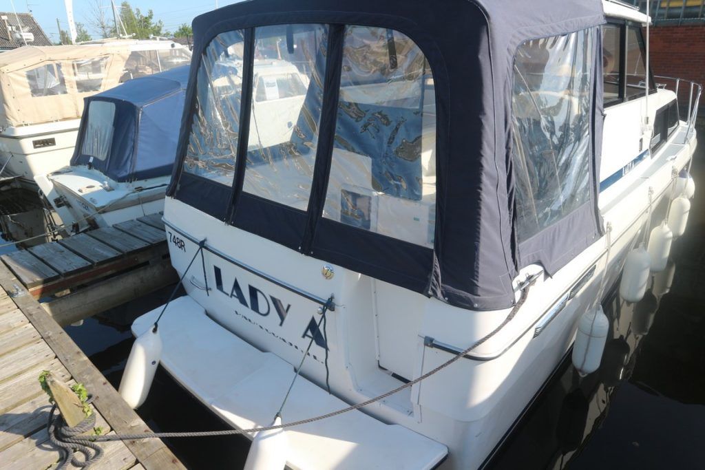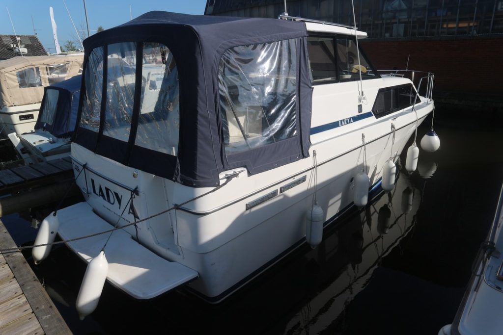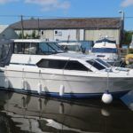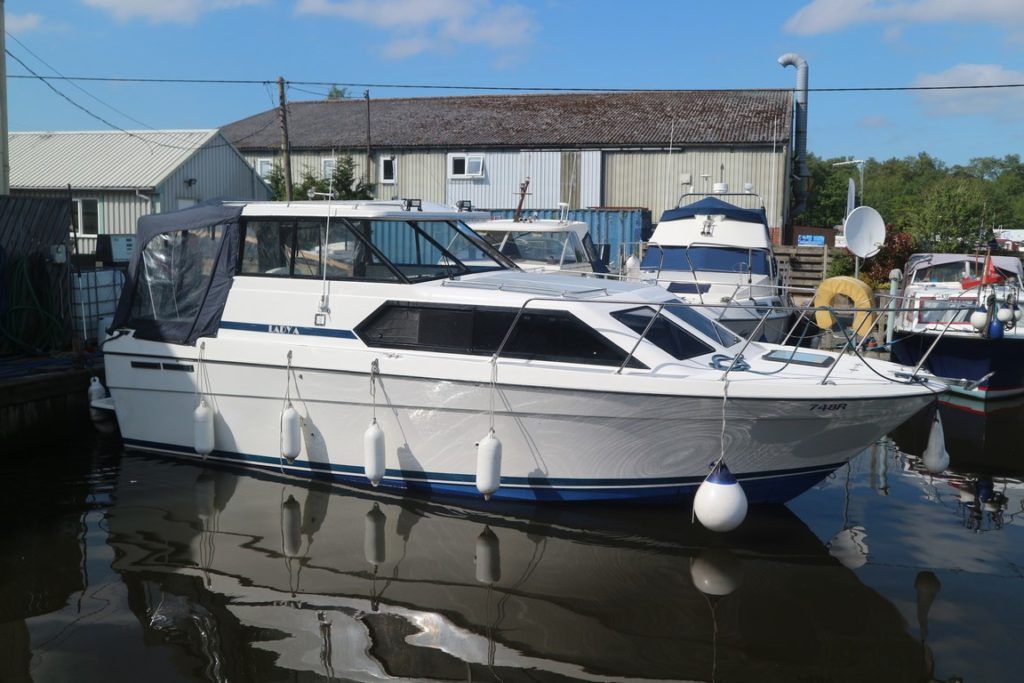 BAYLINER 2859 Classic – Powered by a single Mercruiser 350 Mag petrol. 6 berth accommodation with 1 toilet and 1 shower. A good specification to include; bowthruster, holding tank, warm air heating, trim tabs and shore power supply with battery charger. Recent engine service, sterndrive overhaul/service, full machine polish and antifoul. NYA Stock.