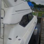 BAYLINER 288 COMMAND BRIDGE – 2006 – Powered by a single 300hp petrol Mercuriser, 6 berth accommodation with 1 toilet and shower facility. Specification to include; Bowthruster, reverse cycle air conditiioning, generator and shore power supply with battery charger. BSC until 2020. A well equipped offshore cruiser.