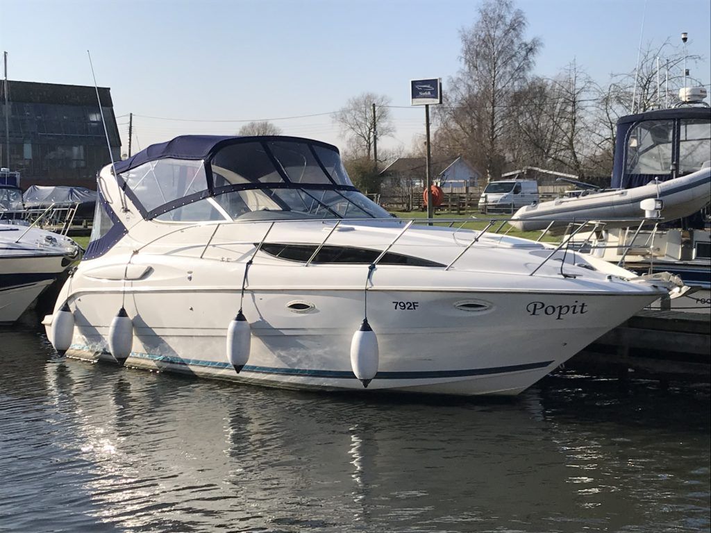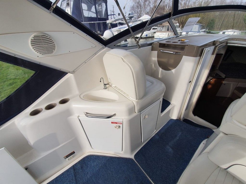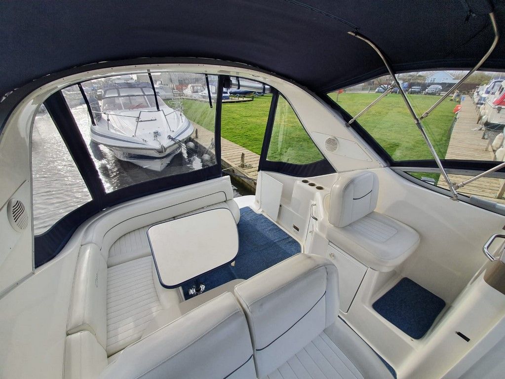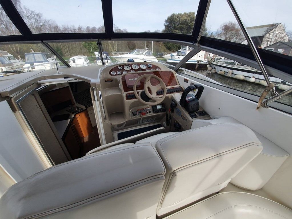 BAYLINER 3055 CIERA SUNBRIDGE – 2001 – Powered by twin Mercruiser 5.0l 240hp petrols. 6 berth accommodation with one toilet and shower. BSC 10/21. Specification to include; Trim tabs, holding tank, electric windlass, Garmin GPS, ICOM VHF and shore power supply with battery charger. A stylish sports cruiser offering fantastic performance and presented in very good order throughout!