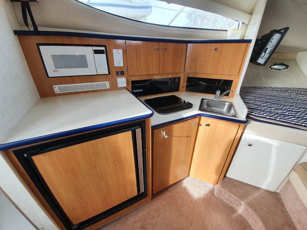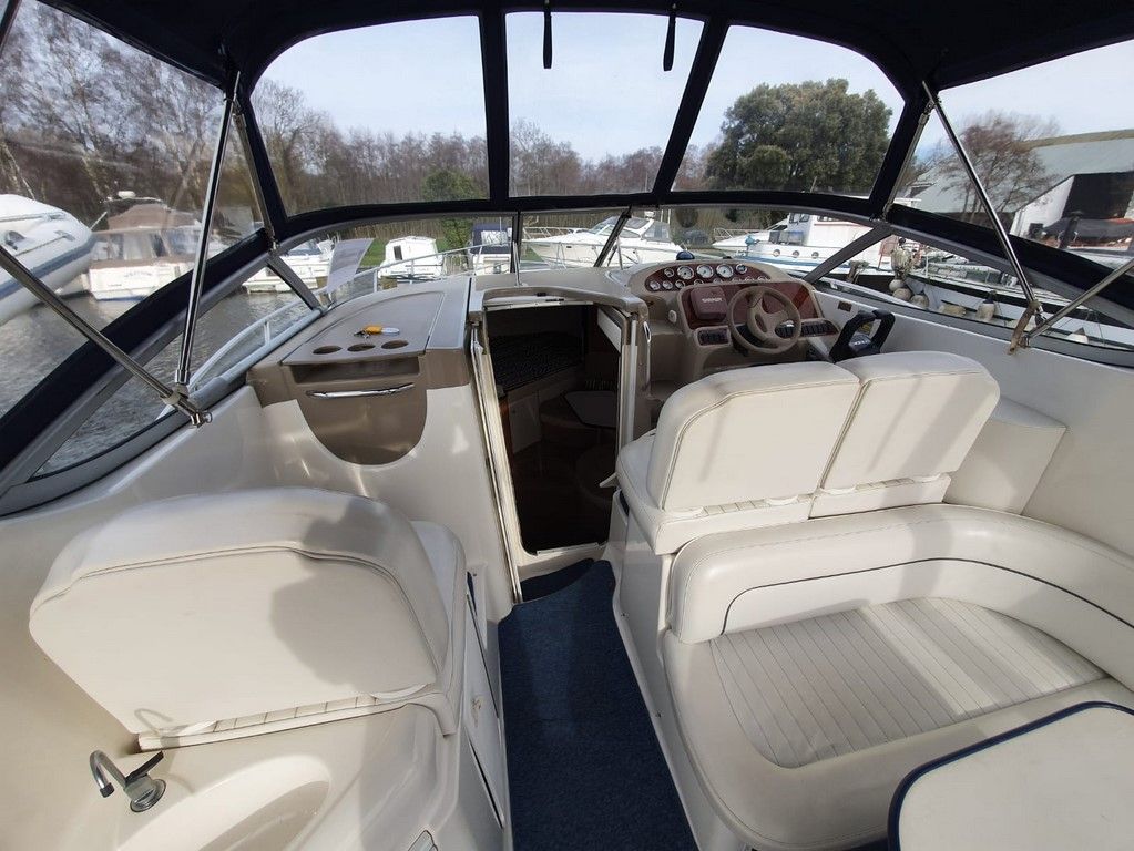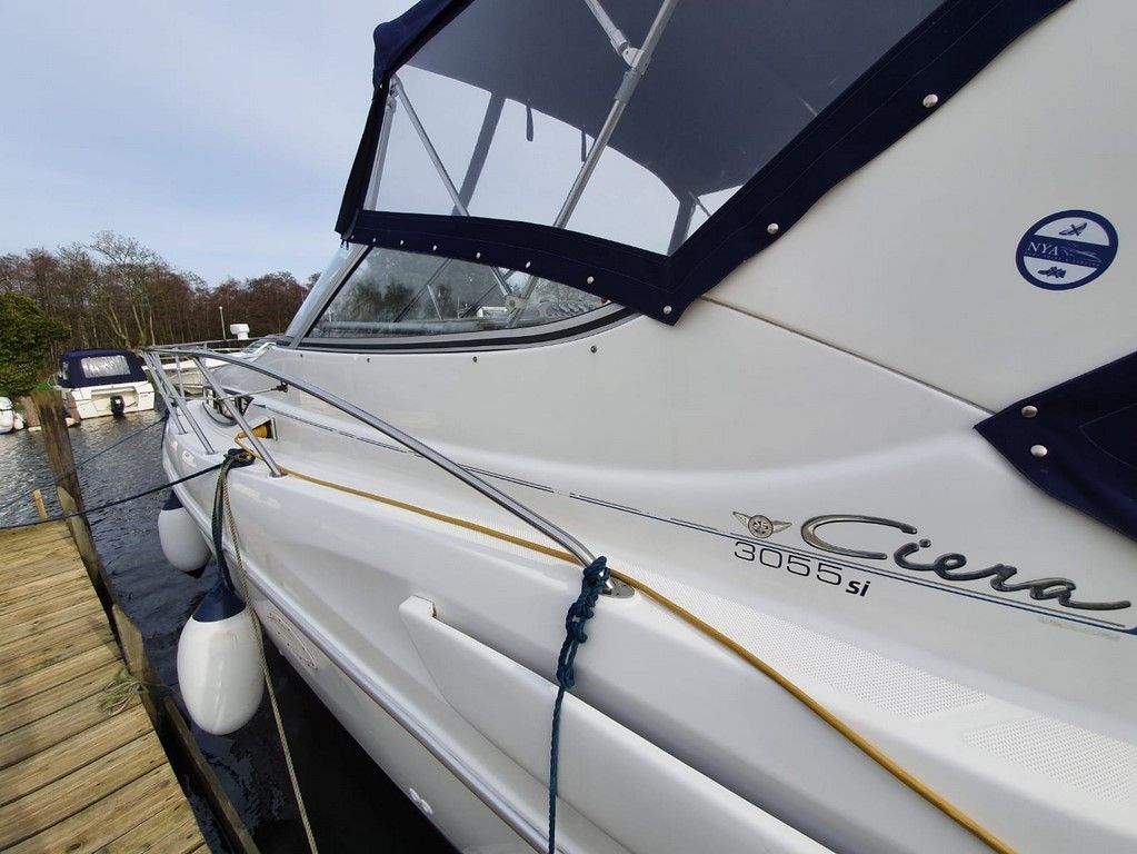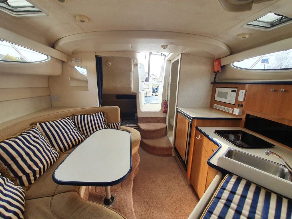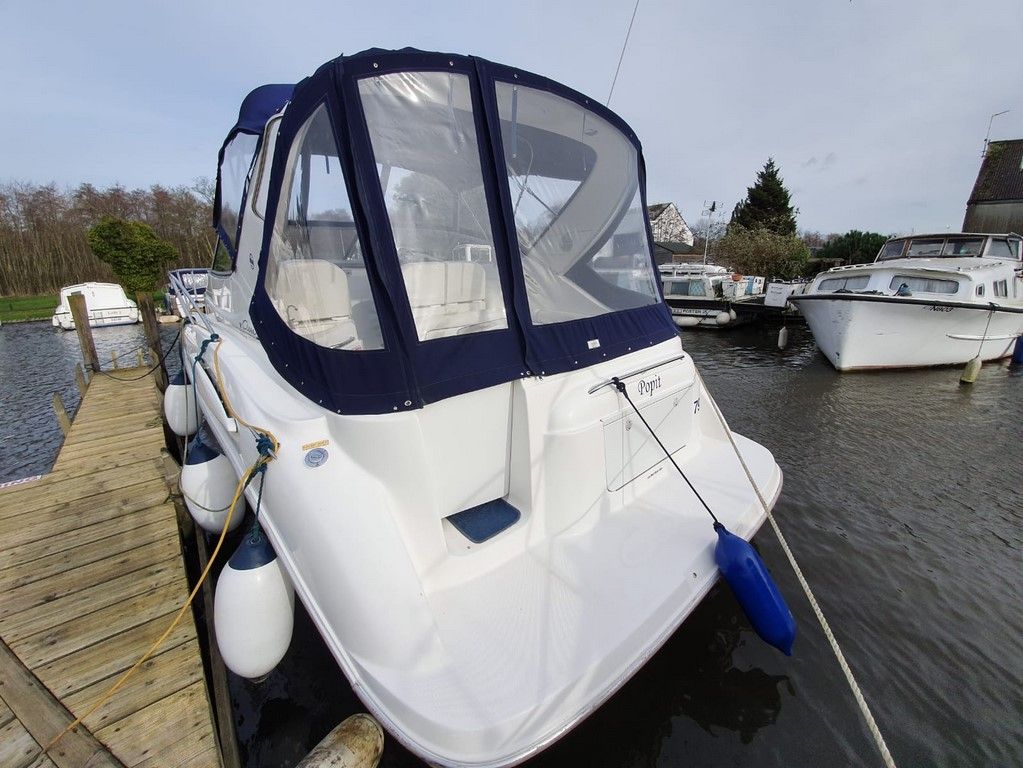 BAYLINER 3055 CIERA SUNBRIDGE – 2001 – Powered by twin Mercruiser 5.0l 240hp petrols. 6 berth accommodation with one toilet and shower. BSC 10/21. Specification to include; Trim tabs, holding tank, electric windlass, Garmin GPS, ICOM VHF and shore power supply with battery charger. A stylish sports cruiser offering fantastic performance and presented in very good order throughout!