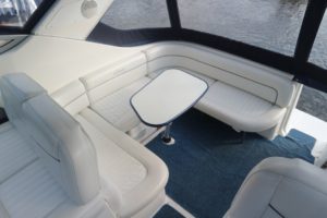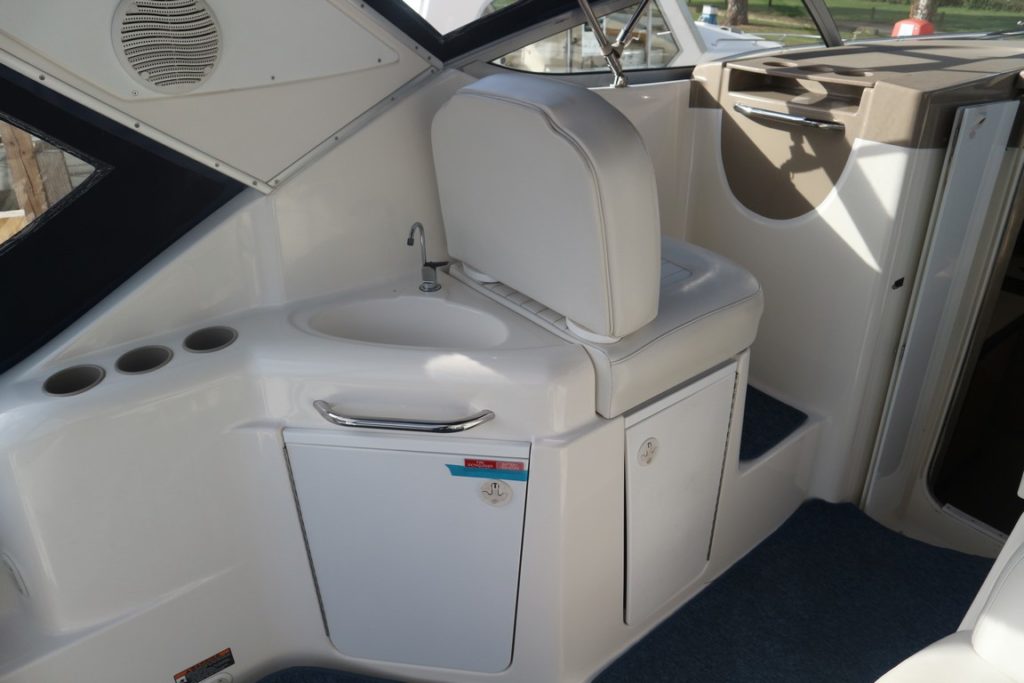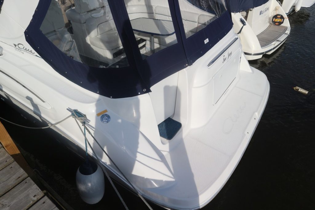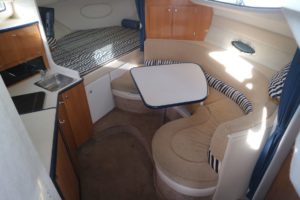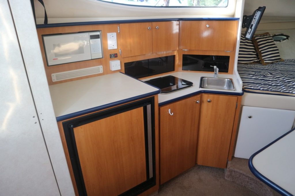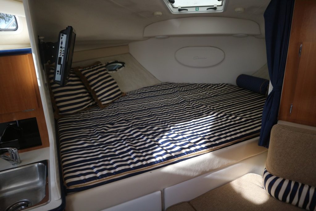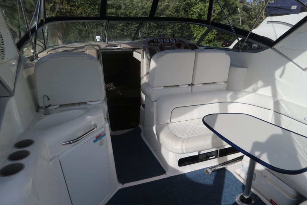 BAYLINER 3055 CIERA SUNBRIDGE – 2001 – Powered by twin Mercruiser 5.0l EFI 240hp petrols. 6 berth accommodation with one toilet and one shower. BSC 10/21. Specification to include; holding tank, trim tabs, electric windlass, Garmin GPS and shore power supply. An NYA stock boat benefitting from a recent drive service, full machine polish, antifoul and new canopy. Engines to be serviced at point of sale. An excellent example, in great condition throughout.
