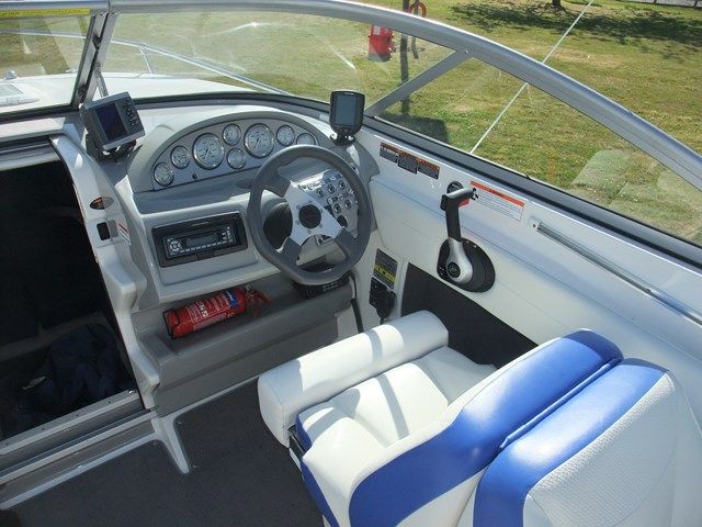 BAYLINER 652 – 2007, 1 x Mercruiser 3.0L 135Hp petrol engine, 2 berths in 1 cabin. 1 x battery, electric windlass, GPS, VHF, fish finder, centre folding windscreen, 2 x tonneau covers, bimini cover, anchor and more. She is a fun, fast and stylish speed boat with the advantage of having 2 berths! Trailer is also included!