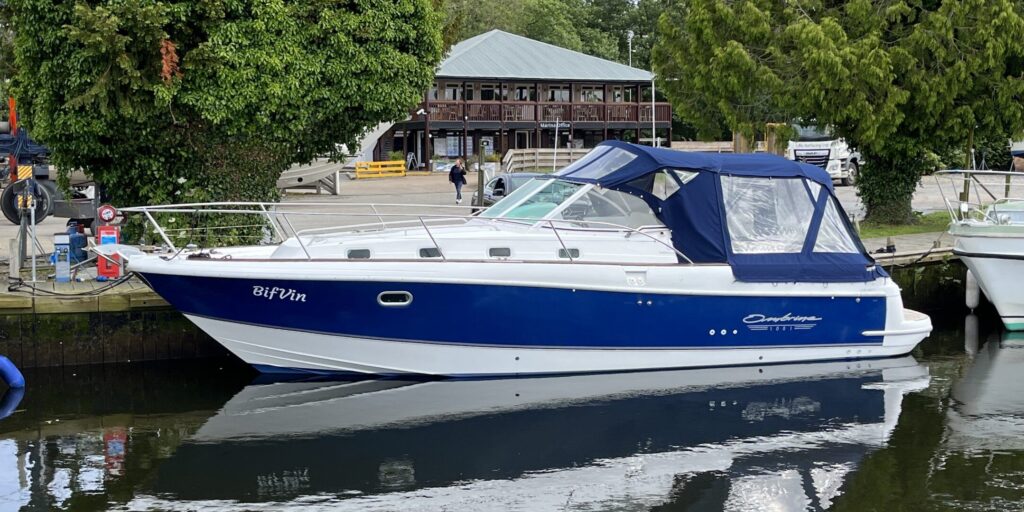 Beneteau Ombrine 1001 – 2003 (2004 Model) – 2 x Volvo Penta KAD43DP 230hp diesel engines. 4 berth accommodation with a toilet and shower compartment. Specification to include; Bow thruster, shore power, warm air heating, battery charger, teak cockpit and bathing platform, electric windlass, electric engine hatch, Raymarine plotter & I70s, trim tabs, immersion, holding tank, new upholstery and more. A beautifully presented example, boasting a spacious cockpit for entertaining, a bathing platform for easy access, deep side decks, and a low air draft for inland cruising. NYA STOCK – Fully prepared by our Service Centre.