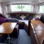 BIRCHWOOD 25 EXECUTIVE – Circa 1980 – Single Ford Watermota Sea Tiger 48hp petrol engine. 4 berths in 2 cabins with additional double summer berth in cabin. Toilet with holding tank and shower heated via calorifer, Inverter. An immaculately kept boat perfect for relaxed cruising on the inland waterways. BSSC until 2017
