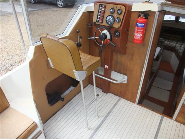BIRCHWOOD 25 EXECUTIVE – circa 1981, Ford Watermota petrol, shaft drive. 6 berths, chemical toilet to holding tankshower, hot water, Battery Charger, galley with oven/grill. A well maintained river cruiser with comfortable accomodation as well as ample deck space.