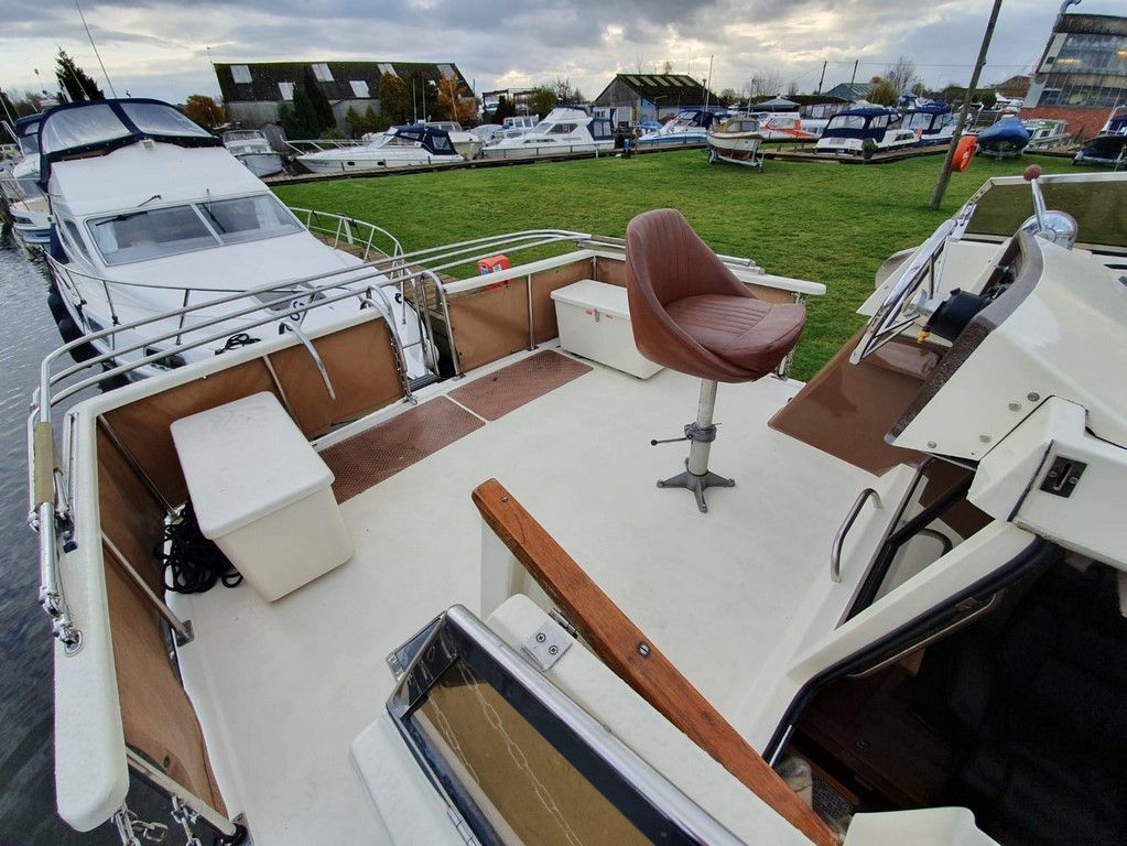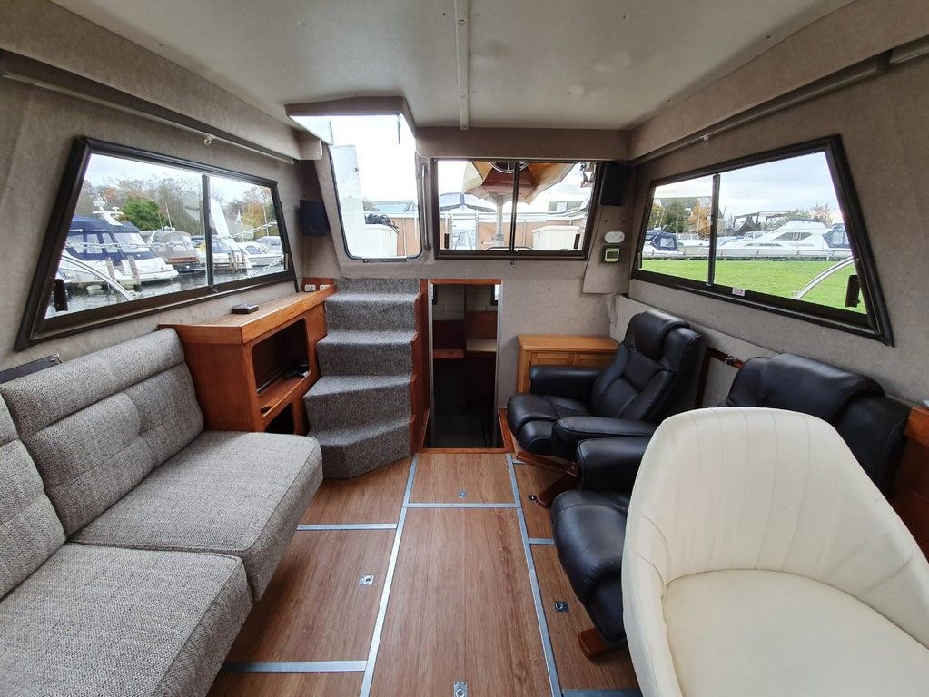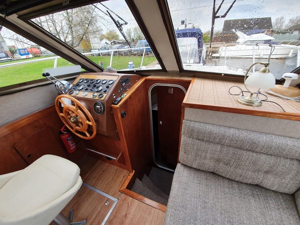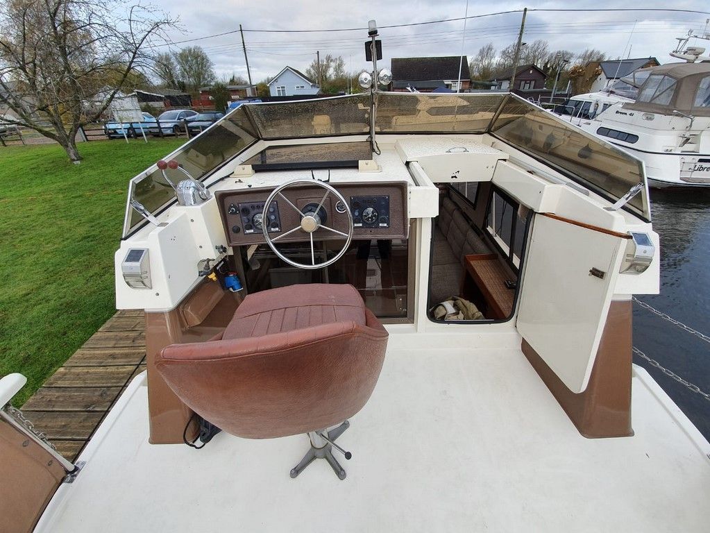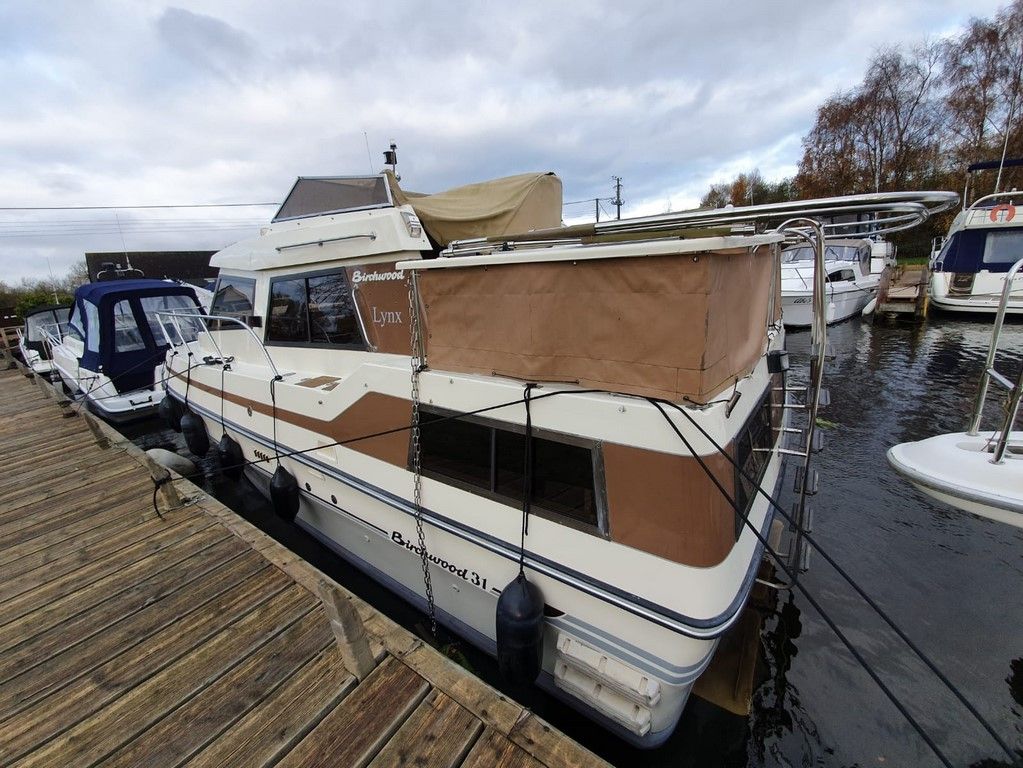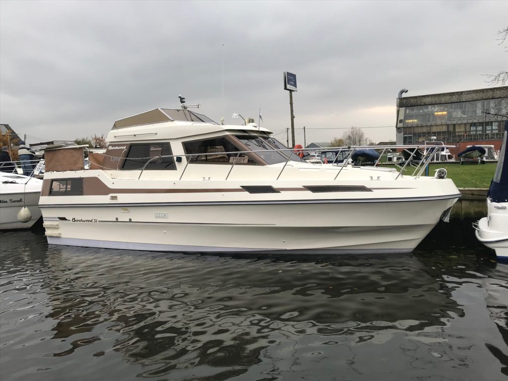 BIRCHWOOD 31 COMMODORE – Circa. 1986 – Powered by twin Volvo TAMD40A 130hp diesels. 4 berth accommodation with toilet and shower. Specification to include; Eberspacher warm air heating, holding tank, shore power supply with 240v sockets, Garmin GPS and fishfinder and VHF. NYA Stock benefiting from a recent full machine polish and antifoul. Presented in very good order throughout!