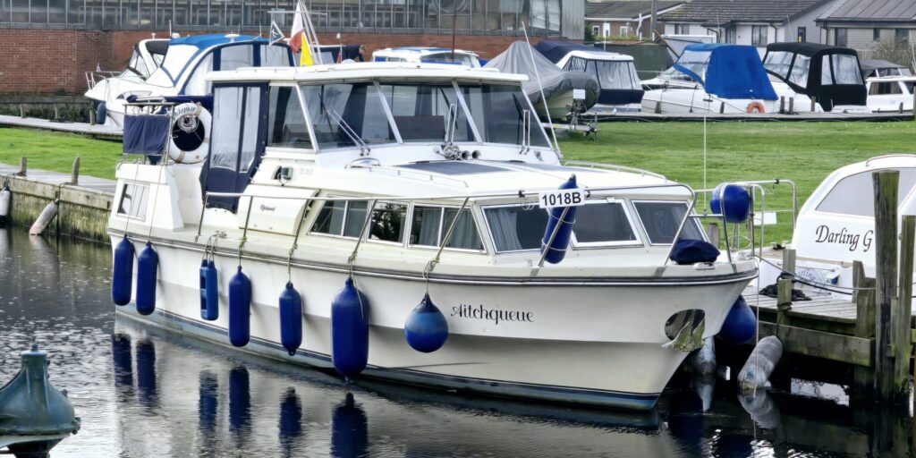 Birchwood 33 – 1976 – 2x Ford Lehman 6 cylinder diesel engines with shaft drives. 6 berth accommodation – 4 forward and 2 in aft cabin with 2 toilets and a shower. Specification to include; Shore power, battery charger, solar panels. davits, winter cover, rear view camera, gas water heater, diesel warm air heating and more. 3x new batteries 2024. Engines serviced and antifouled 2023, New water tank 2023. BSC 2026. A versatile family cruiser with offshore and inland capabilities.
