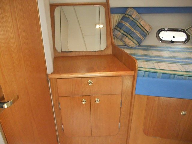 BIRCHWOOD 330 CHALLENGER – 1998 – 2 x Mercruiser 3.6L diesel engines. 4 berths in 2 cabins, 1 toilet and shower. Shore power, battery charger, holding tank, Raymarine chart plotter, warm air heating. Spacious family cruiser with excellent sea-keeping qualities, a versatile boat providing both speed and relaxed cruising. NYA stock, fully prepared by our Service Centre.