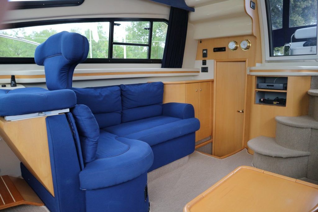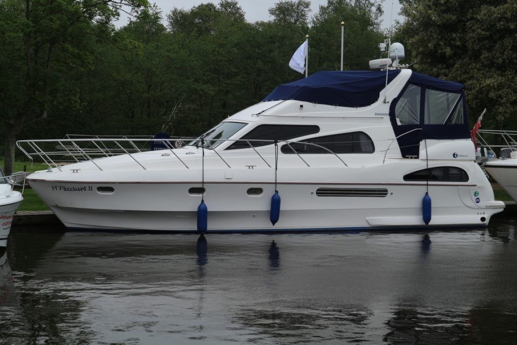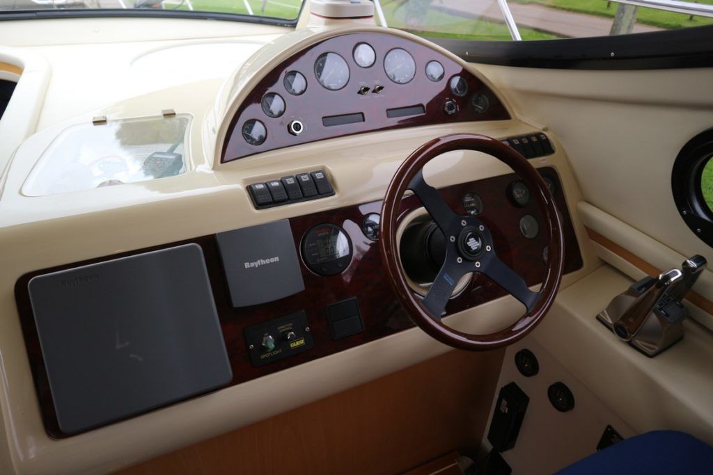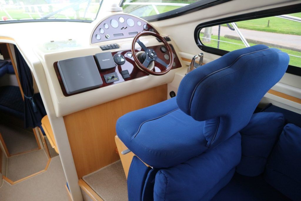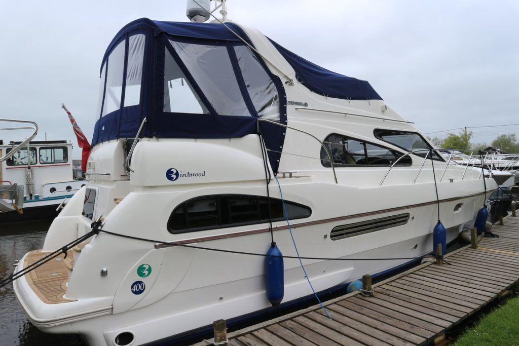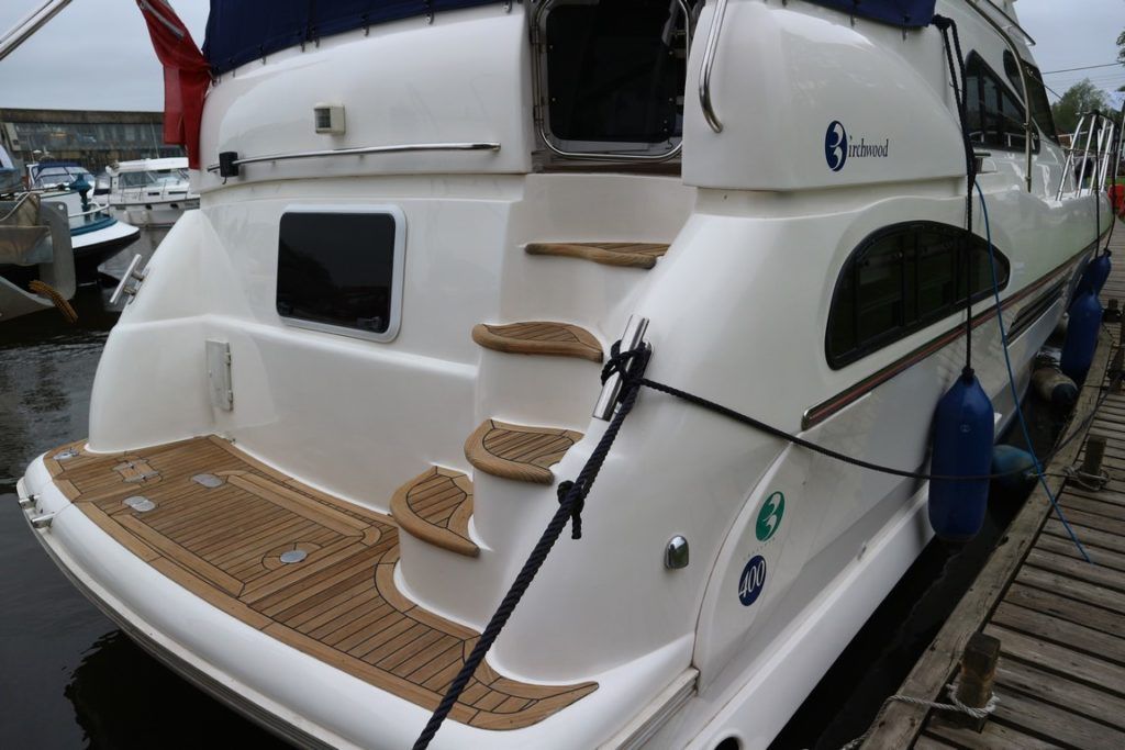BIRCHWOOD 400 CRUSADER – 2000 – Powered by twin Mercruiser D-Tronic 250 diesels. 6 berth accommodation with 2 toilets and 2 showers. Specification to include; Holding tank, Warm air heating, electric windlass, Tracvision, a range of navigation equipment and shore power supply with charger. Folding radar arch and teak laid cockpit, steps and bathing platform. Fully prepared by NYA to include, recent full machine polish, engine service and antifoul. A lightly used Birchwood 400 with very low engine hours.