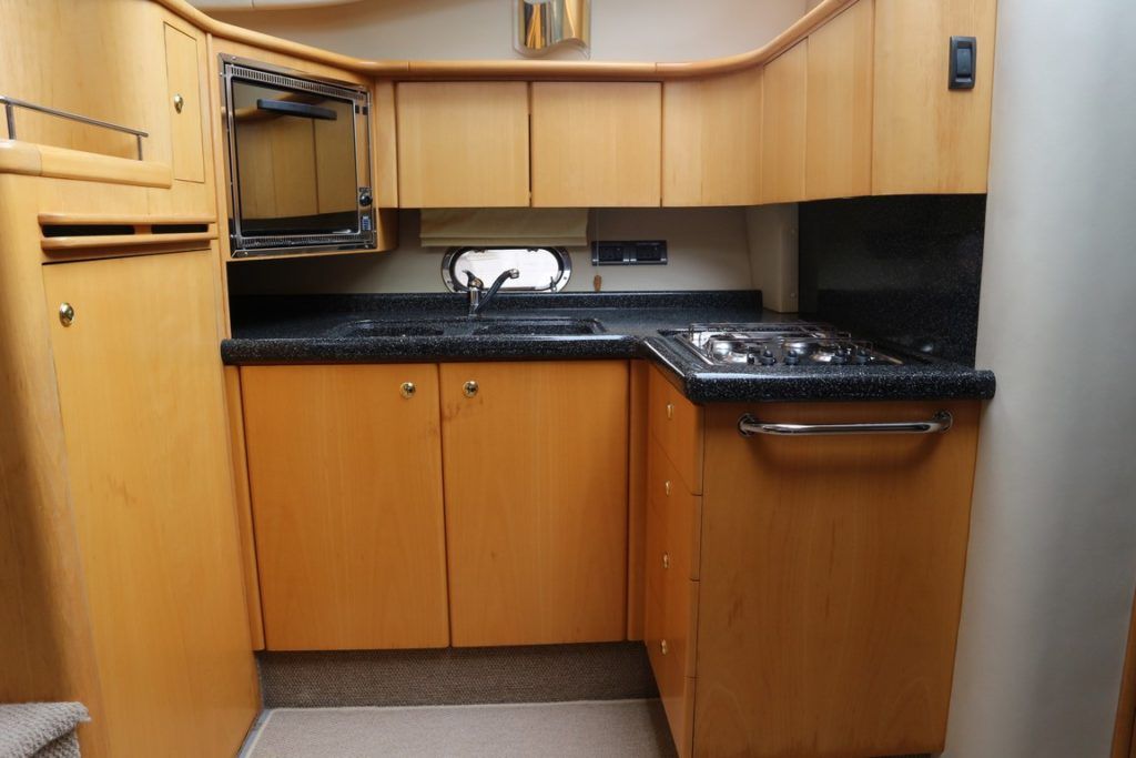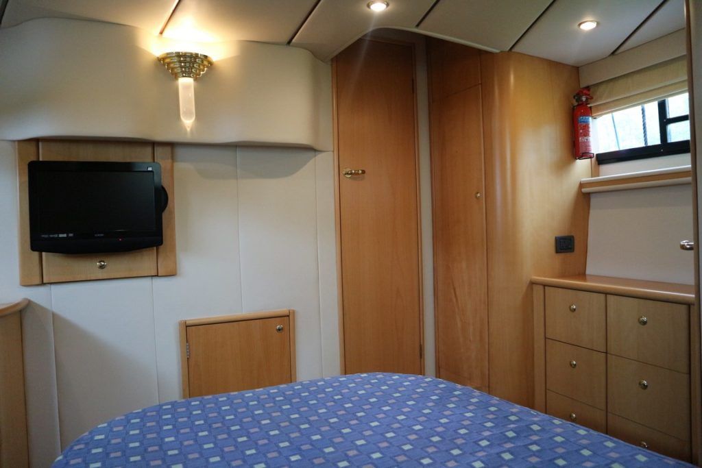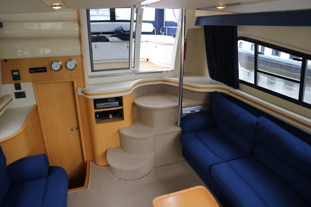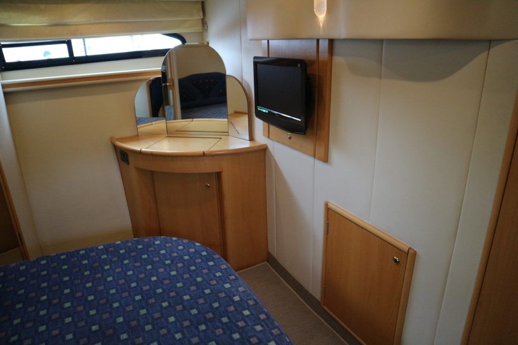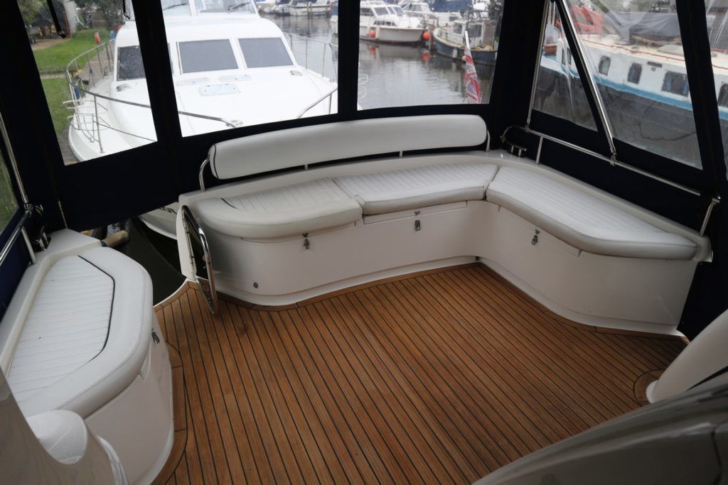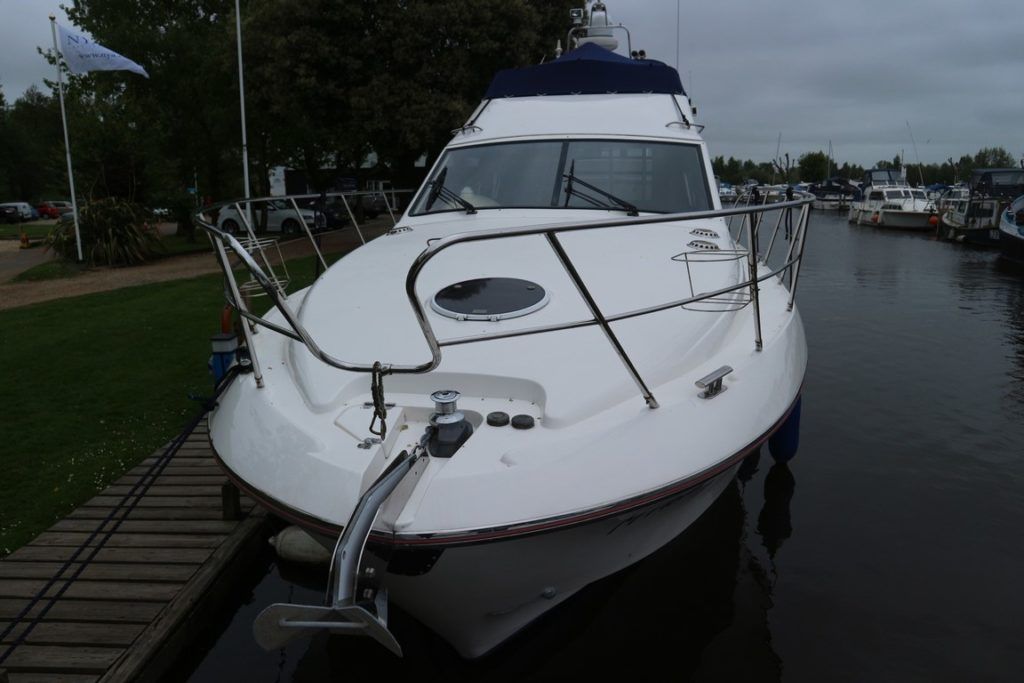 BIRCHWOOD 400 CRUSADER – 2000 – Powered by twin Mercruiser D-Tronic 250 diesels. 6 berth accommodation with 2 toilets and 2 showers. Specification to include; Holding tank, Warm air heating, electric windlass, Tracvision, a range of navigation equipment and shore power supply with charger. Folding radar arch and teak laid cockpit, steps and bathing platform. Fully prepared by NYA to include, recent full machine polish, engine service and antifoul. A lightly used Birchwood 400 with very low engine hours.