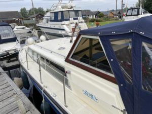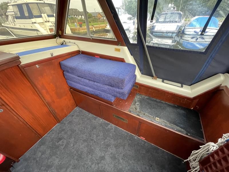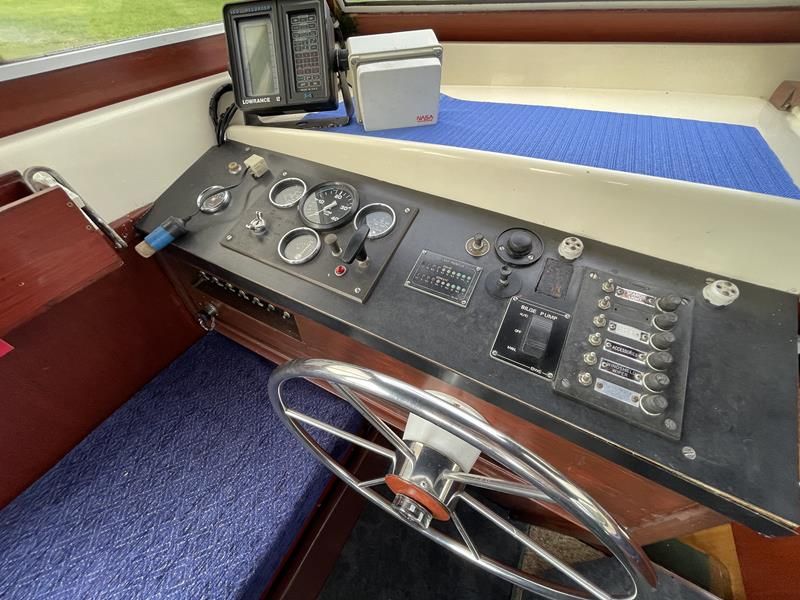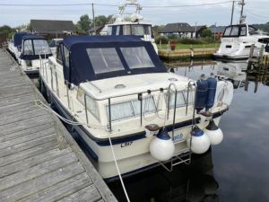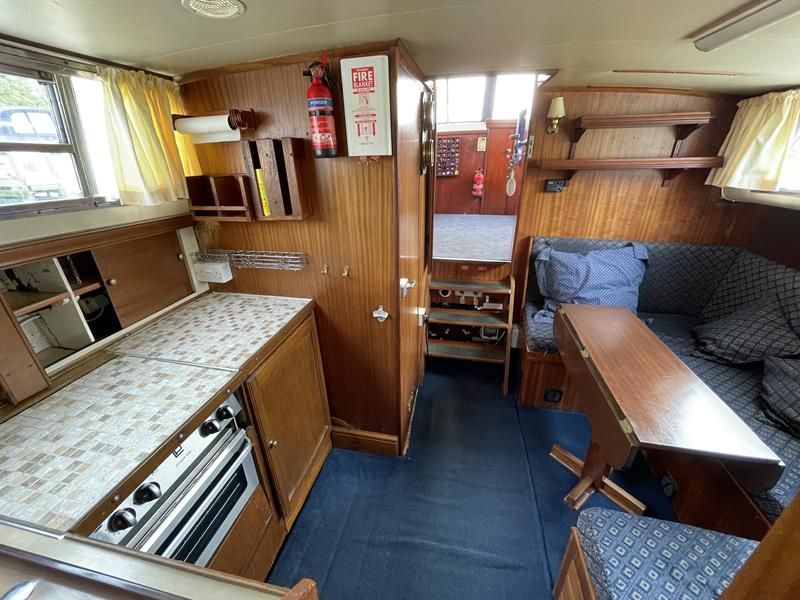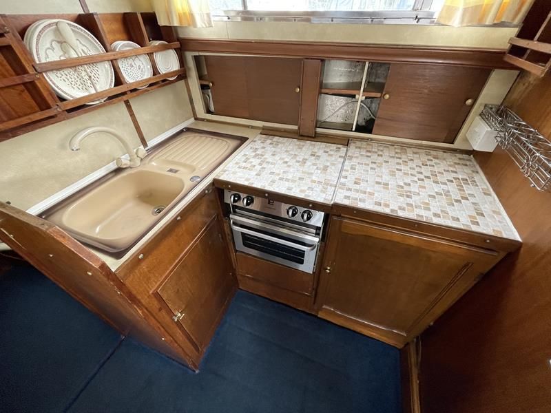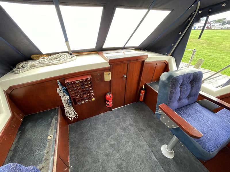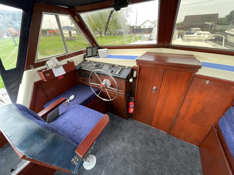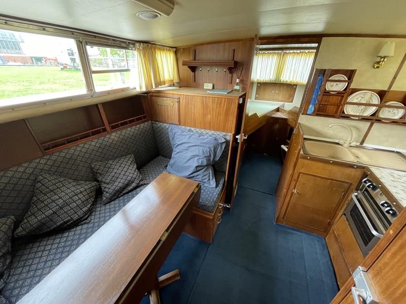 BIRCHWOOD GT – Circa. 1970 – Powered by a single Leyland Thorneycroft 51hp diesel – 5 berth accommodation with toilet and shower – Specification to include’ Propex heating, inverter, shore power with 240v sockets and battery charger, holding tank, 12v supply, cooker, fridge, sink with hot and cold supply. In current ownership for 24 years used to cruise throughout the Broads. An economical, low air draft river cruiser.