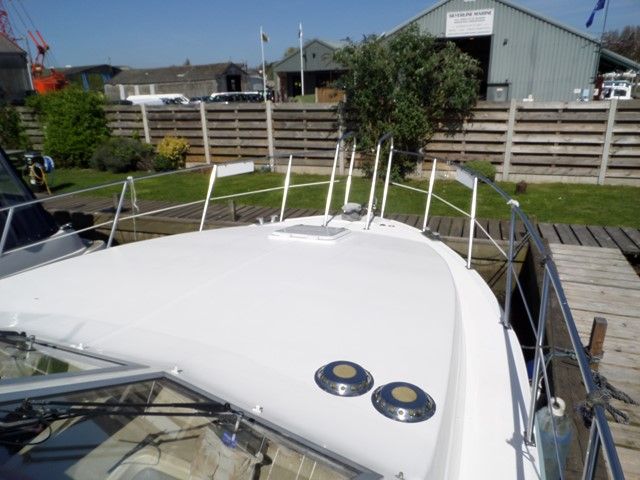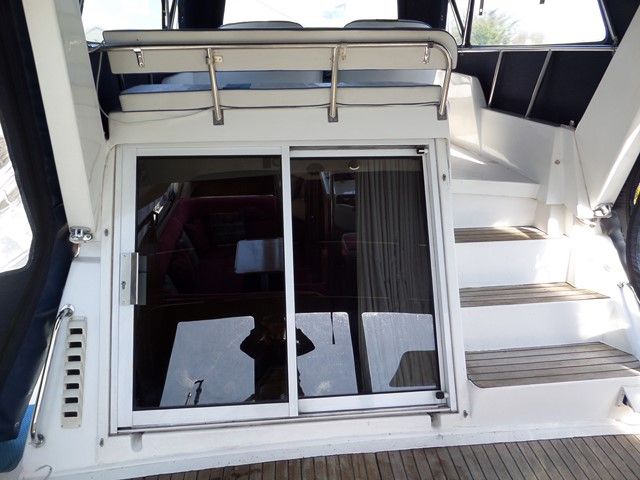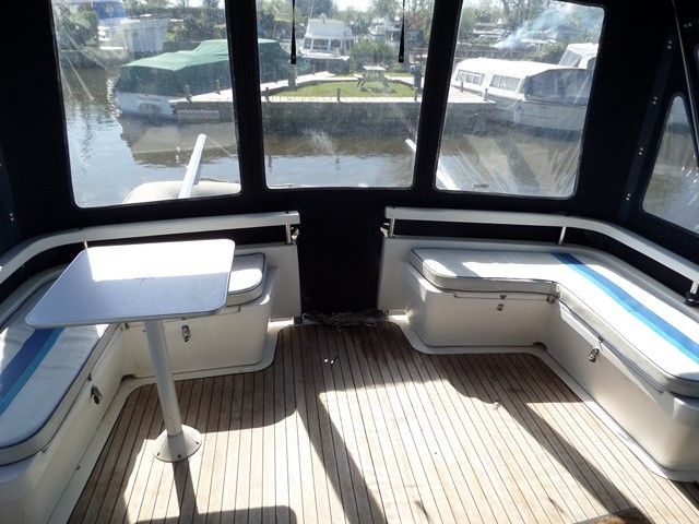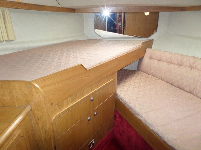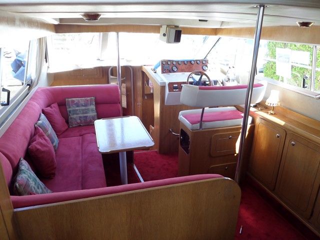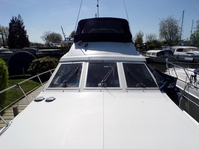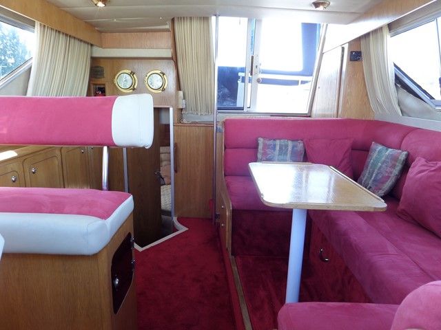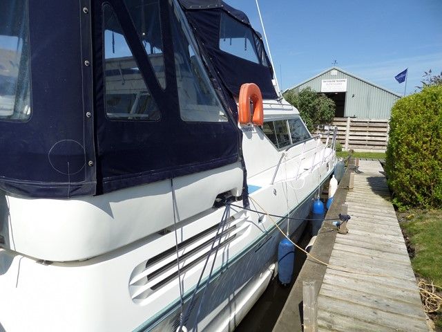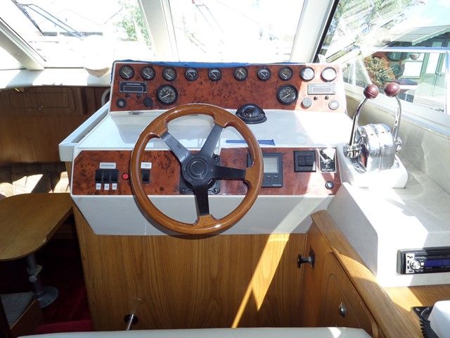 BIRCHWOOD TS37 – 1992, 2 x Volvo 230Hp diesel engines, 8 berths in 2 cabins, 2 x electric toilets & showers, Boat Safety Certificate. Spec including: shore power, battery charger, hot air heating, folding radar arch, full canopies, radar, electric anchor winch and more! She offers a lot of space & accomodation, perfect for spending time on board!