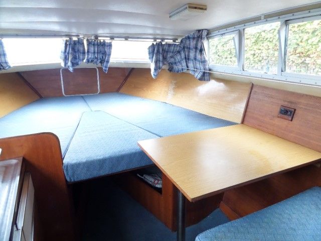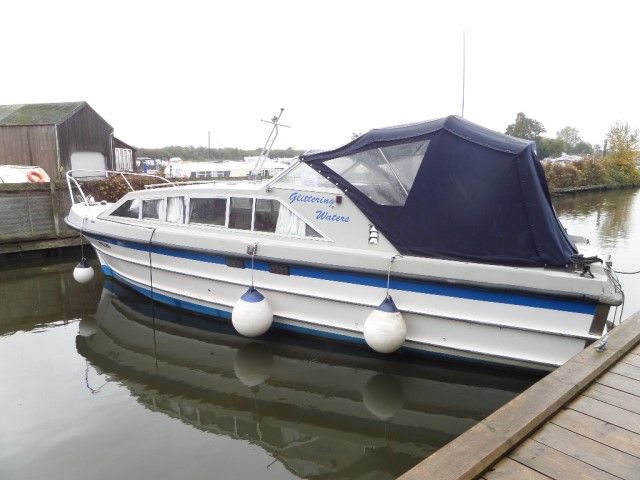 BOUNTY 27 MKII – Built 1981, single BMC diesel engine. 2 berths, pumpout toilet/ shower, warm air heating, battery charger, cooker, fridge, hot water supply, BSC expires 2017, Lofrans windlass, folding windscreens allowing passage under all Broadland bridges, wiper. Wintered ashore, engine serviced and hull antifouled annually.
