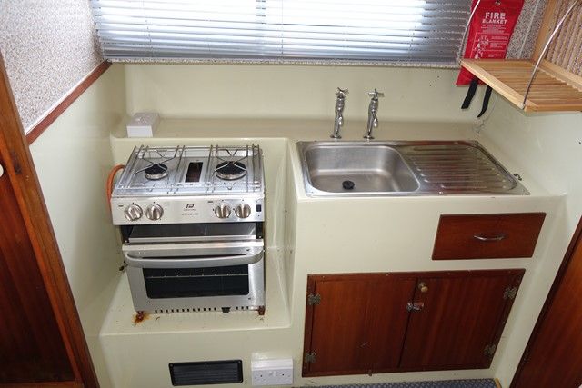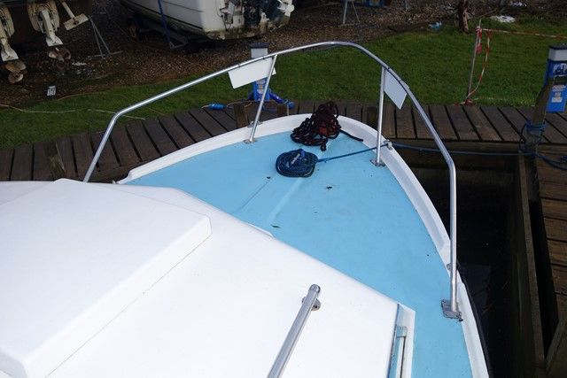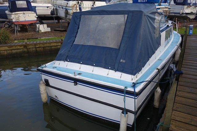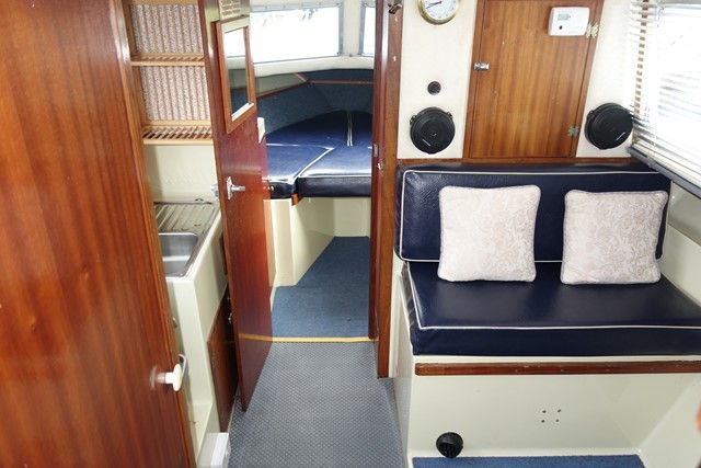 BOUNTY 27 – 1978 – Single BMC 36hp diesel engine. 4 berths with toilet to holding tank and shower. Battery charger, Inverter, Folding windscreens, Webasto warm air heating system, Calorifier and immersion heater. A classic inland cruiser. This craft has been lovingly refurbished including full antifoul to hull and engine service 2014. Brand new Boat Safety Certificate issued July 2015.