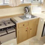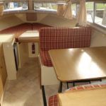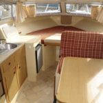 BOUNTY 27 – 1990 – Single Leyland 35hp Diesel Engine. 4 berths, great for river cruising and overnight stays. This Bounty accommodates with a fridge, oven, grill, cooker, crockery and cutlery, shore power, batteries, wheel steering and spacious cockpit with helms chair. An ideal boat for inland waterways and suitable starter boat.