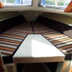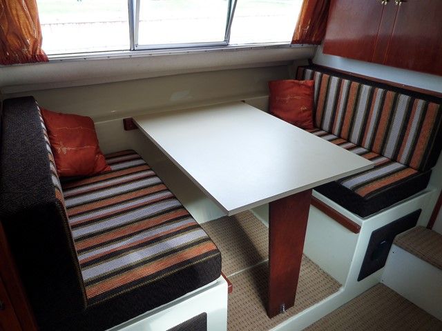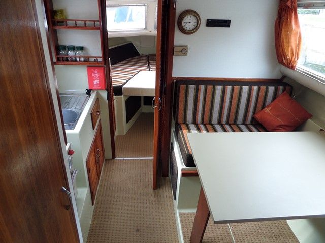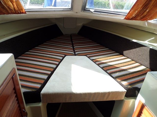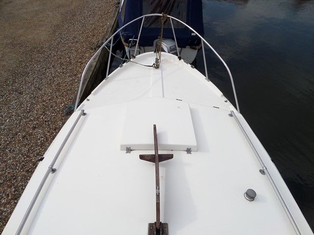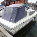 BOUNTY 27 – 1978 – Single BMC 1.5 36HP Diesel Engine. 4 Berths in two fwd cabin and saloon. Toilet, holding tank and shower. BSC 2019, Folding windscreens, warm air heating system. Not your usual ex hire Bounty 27. Requires a little up dating but in her original gel and never been in a hire fleet. This is a rare boat!
