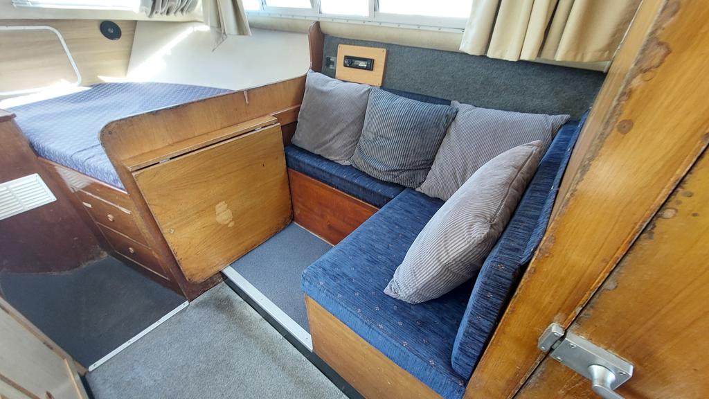 Bounty 27 MKII – 1984 – Single diesel engine through a shaft. 2 berth accommodation with a single toilet and shower compartment. Specification to include; inverter, folding windscreens, warm air heating, TV/DVD player. “Glittering Light 1” is an ideal starter boat for a couple wishing to explore the broads or any other inland waterways. She offers good accommodation in a simple, practical and economical package. More pictures to follow.