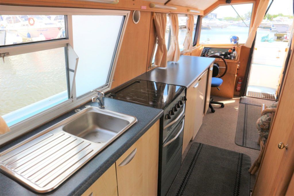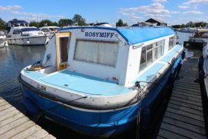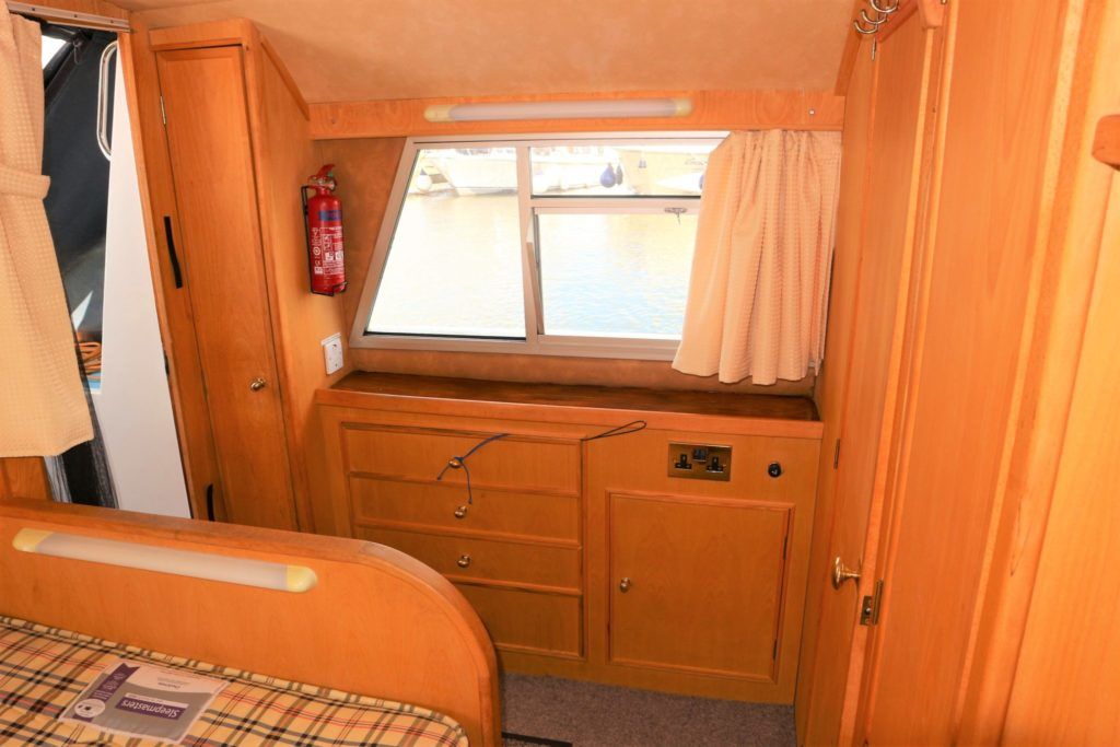 BOUNTY 30 – 1981 – 1 x BMC 1.5 Diesel Engine. Spacious 2 berth accommodation with a large toilet/shower compartment. Generously sized Galley with full size cooker and fridge. Spec including bow thruster, shore power, battery charger, immersion heater, warm air heating. BSC 05/21. A very comfortable example of these single level cruisers, ideal for longer stays on board & navigating through lower bridges.