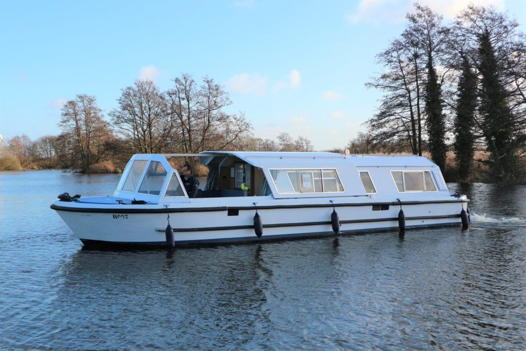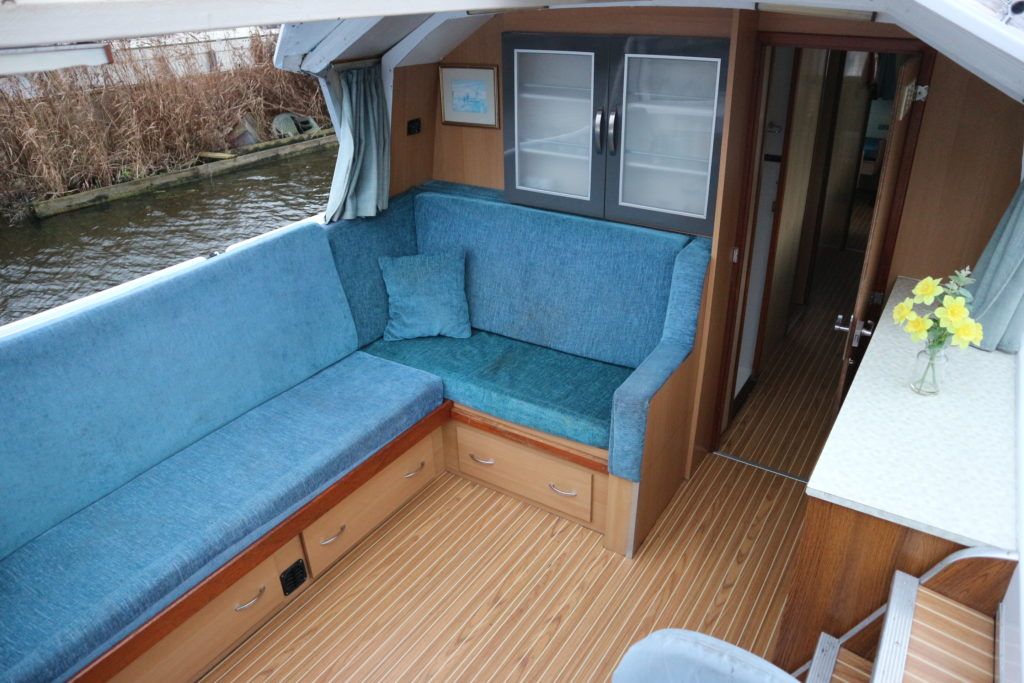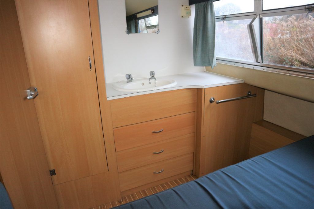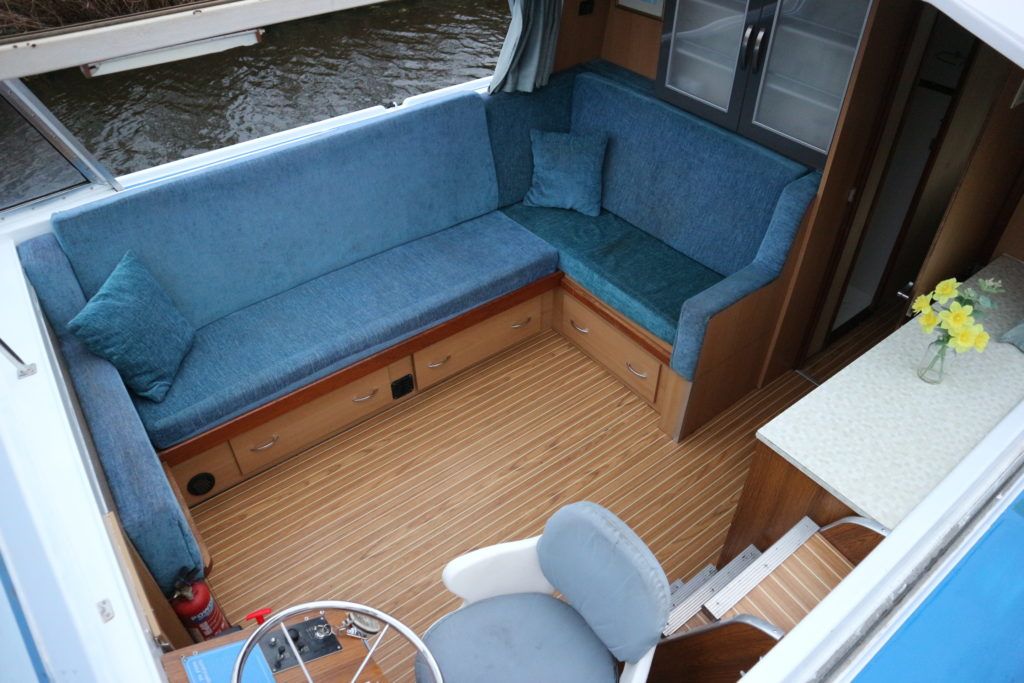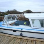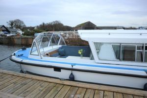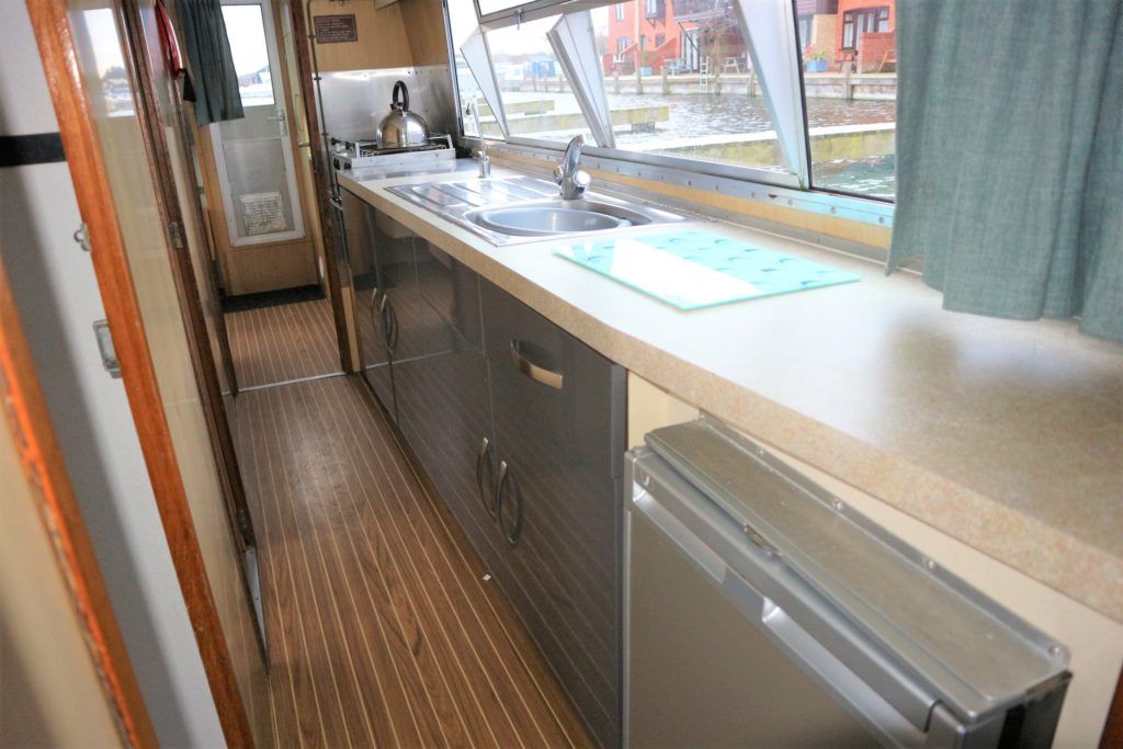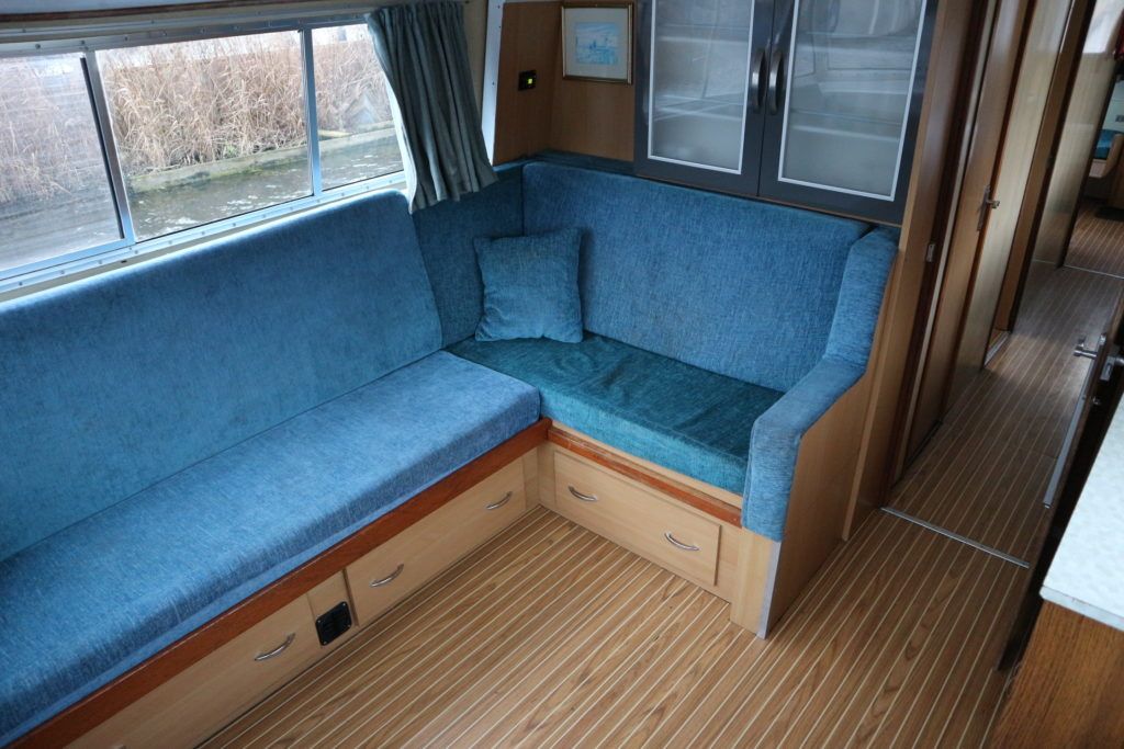 BOUNTY 37 MKII – Circa 1980 – Powered by a BMC 1.5 (36hp) diesel engine. Six berth accommodation over two cabins and saloon with 1 x toilet/shower compartment. Specification including warm air heating, teak and holly effect flooring throughout, full sliding canopy over saloon. BSC 06/23. A spacious and comfortable single level river cruiser with a low air draft, ideal for extended river cruising or potential live aboard.