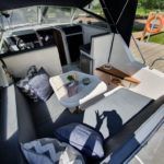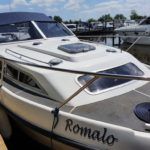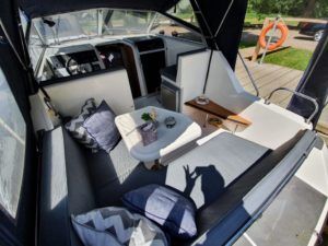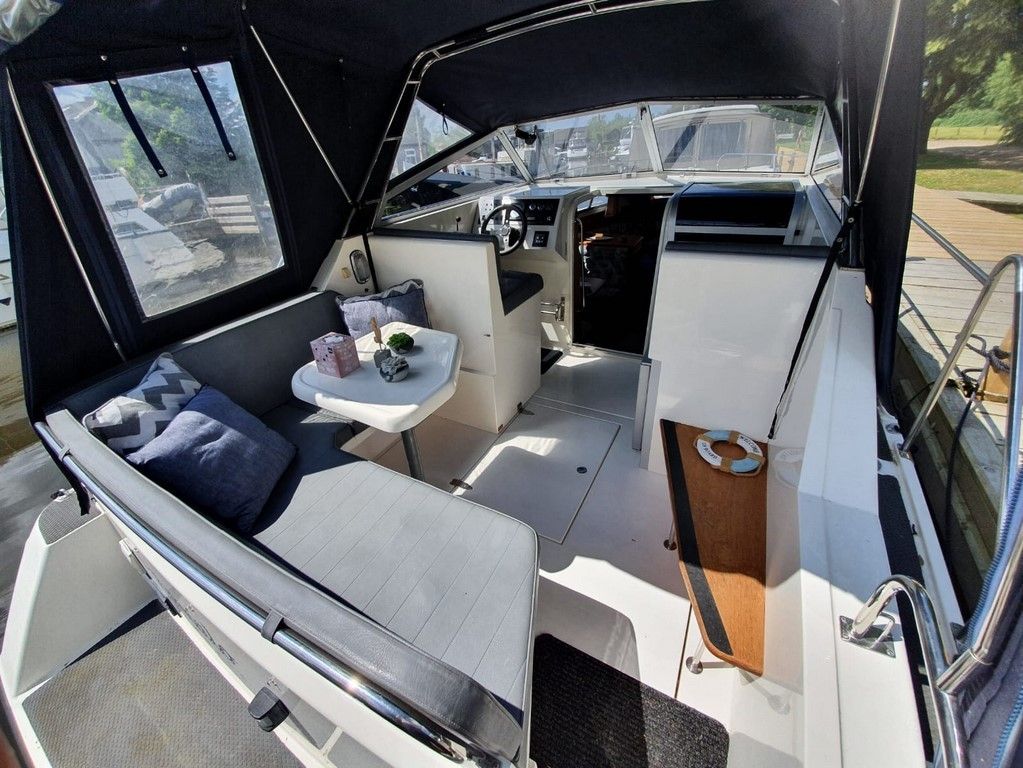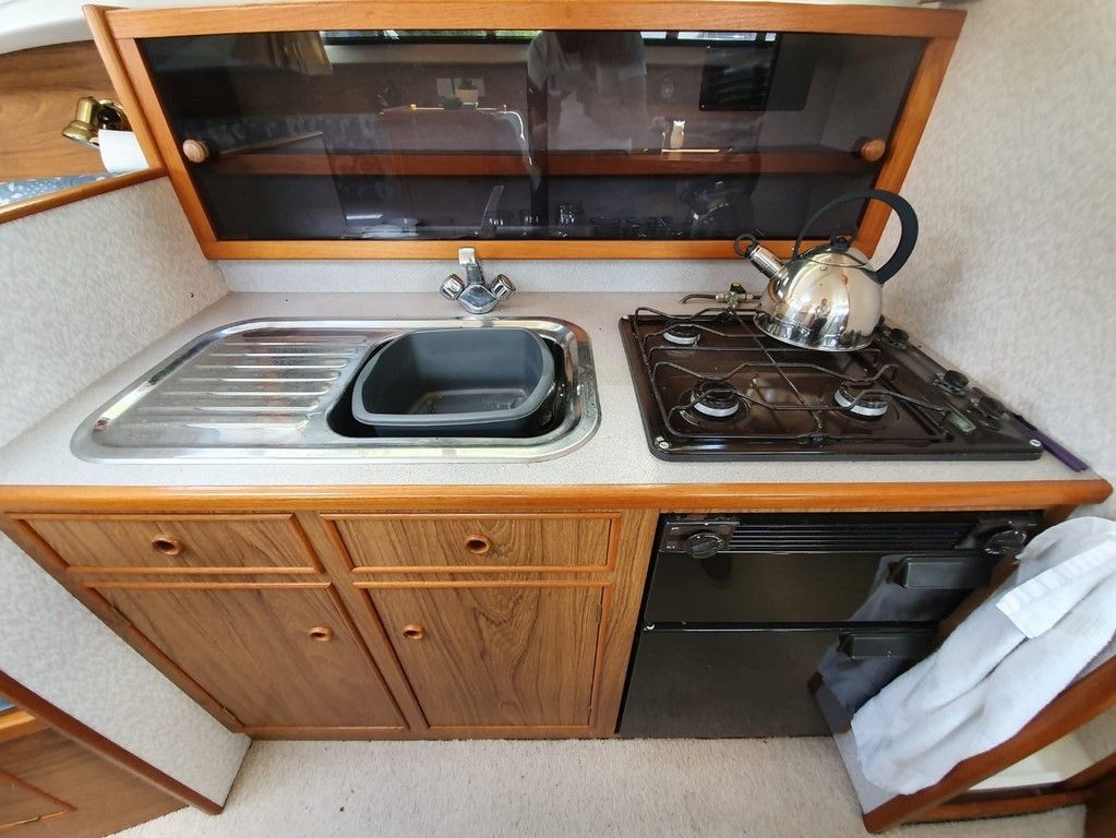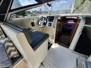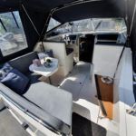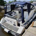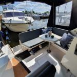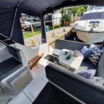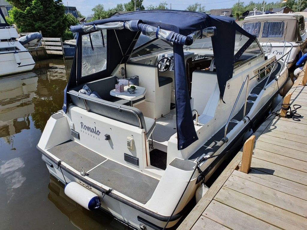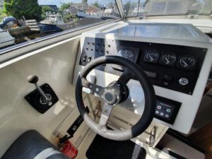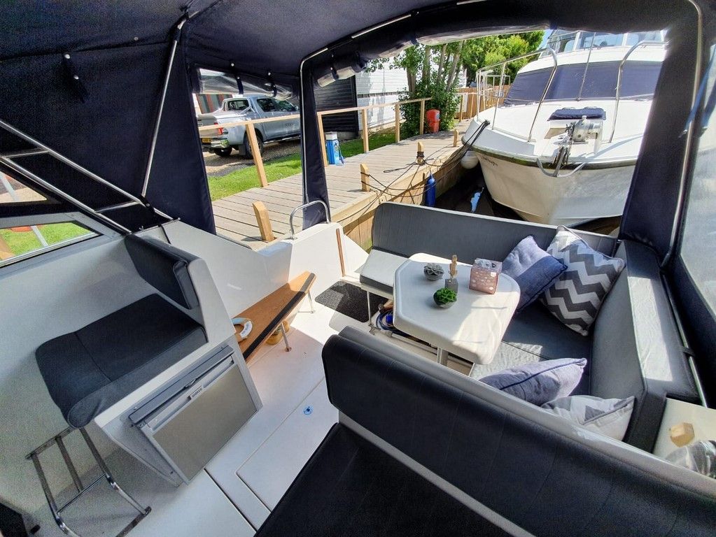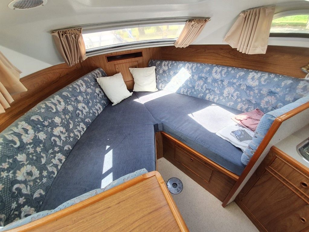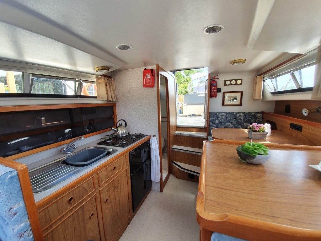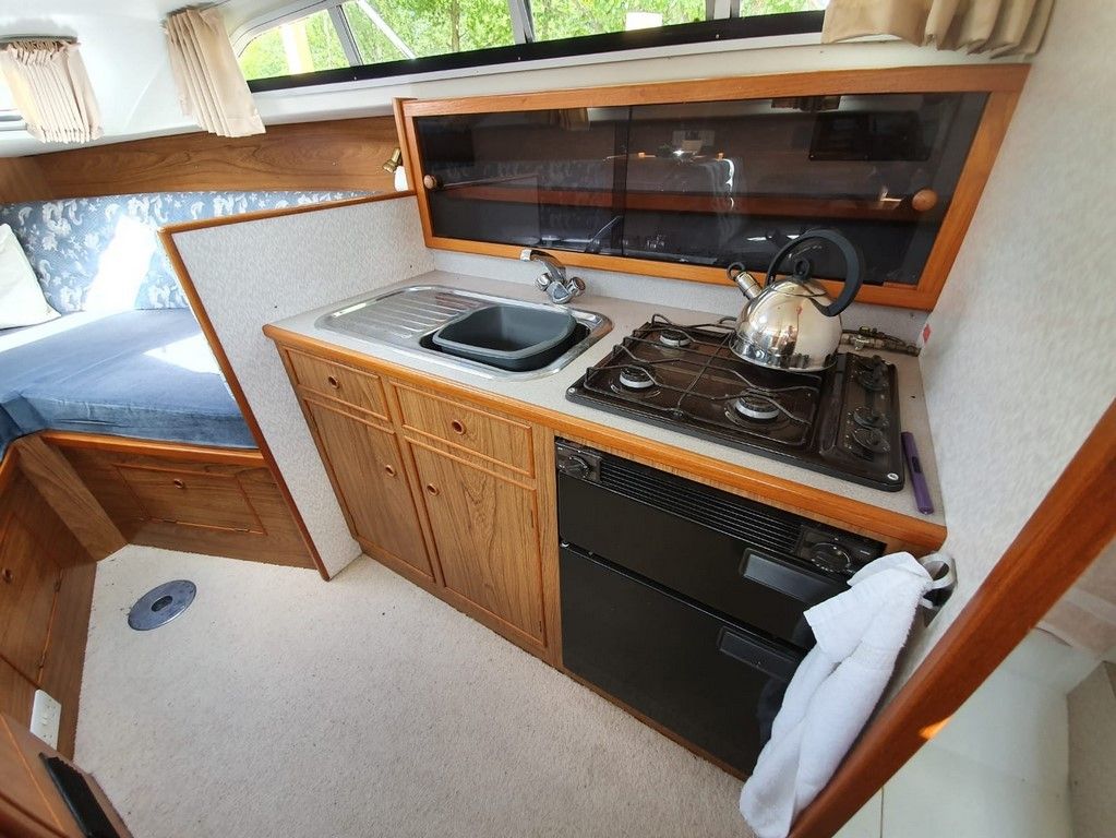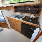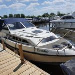 BOUNTY BRISTER 27 – 1995 – Powered by a single Kubota 35hp diesel through a shaft. 2 berth accommodation with toilet and shower. Specification to include; Sidepower bowthruster, warm air heating, holding tank, shore power supply with battery charger and 240v sockets. Folding canopy framework and screens giving a much reduced air draft for great access across the inland waterways. Full guard rails with non-slip decks. Sought after single diesel and shaft configuration, absolutely ideal for those wanting a well specified river boat to explore as much of the Norfolk Broads as possible.