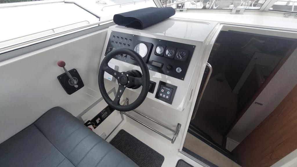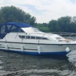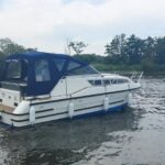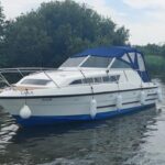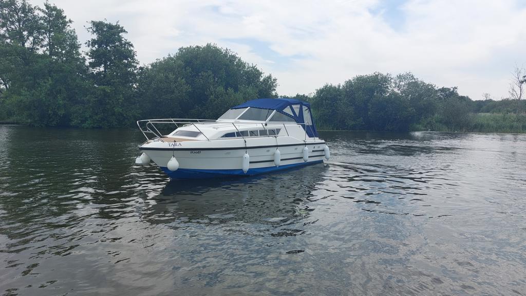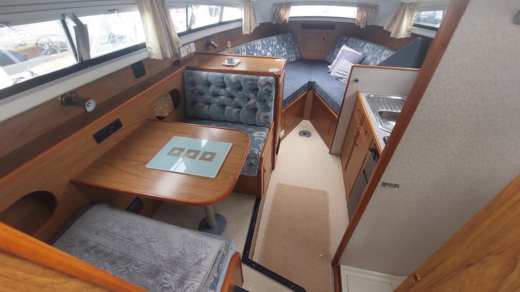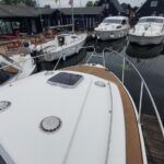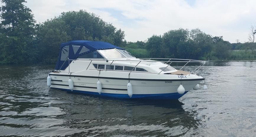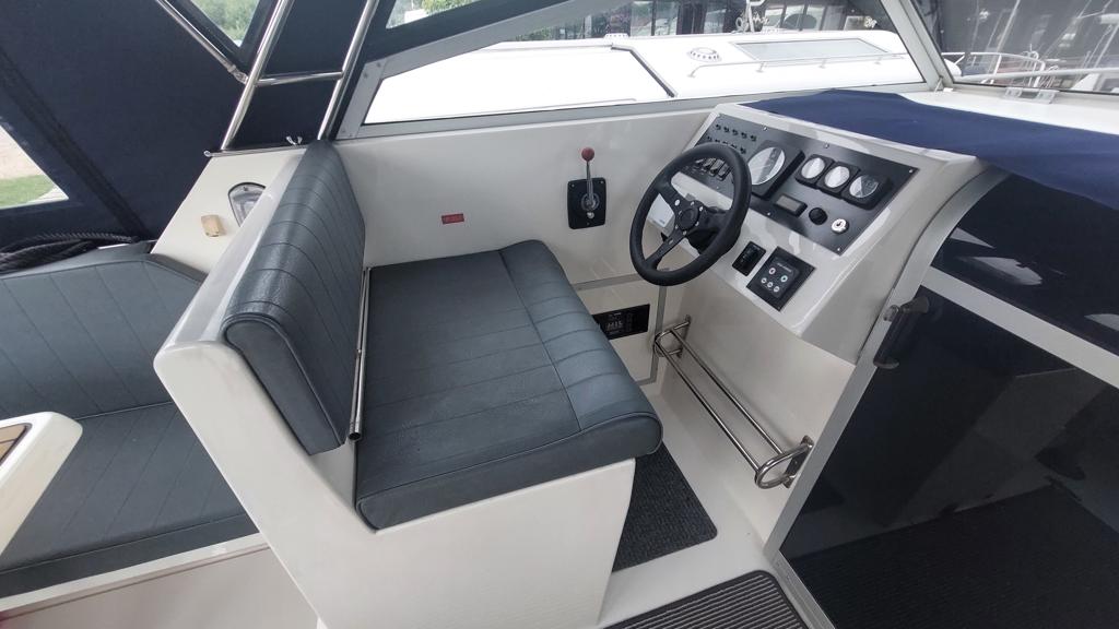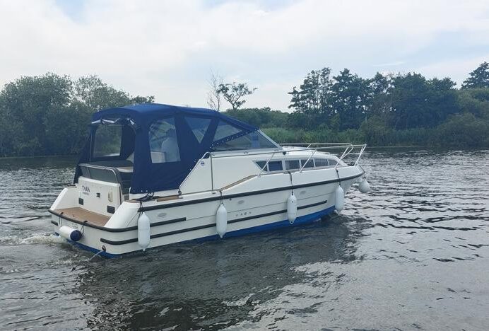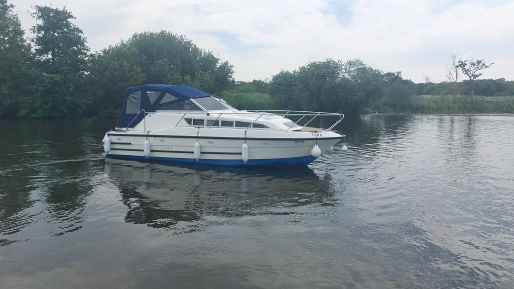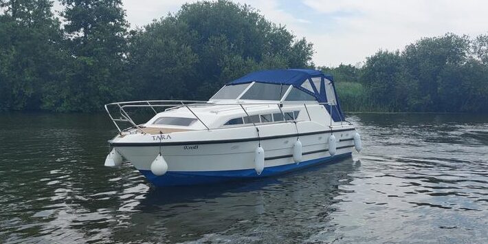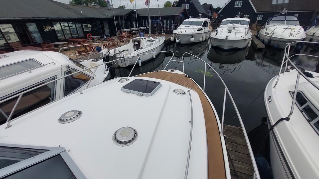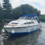Bounty Brister 27 – 1995. Single Nanni N4.150 37.5hp diesel engine through a shaft. 2 berth accommodation with a single toilet and shower compartment. Specification to include; bow-thruster, warm air heating, battery charger, folding screens, full canopy, electric windlass, speed and depth log. “Tara” is a very nice and well maintained example of these ever popular motor cruisers. She boats a very comprehensive specification and folding windscreens give her a low air-draft allowing exploration of most of the Norfolk Broads. BSC 06/29