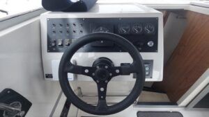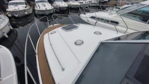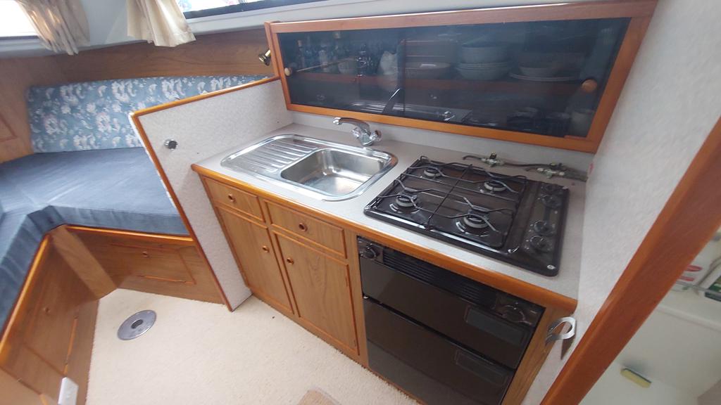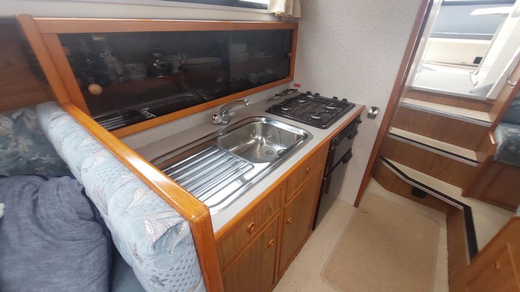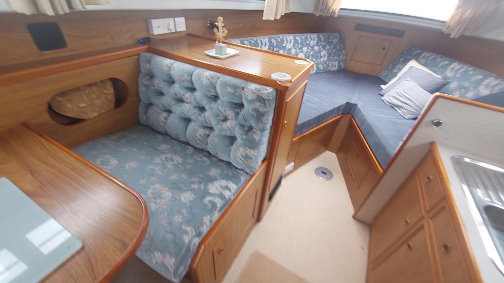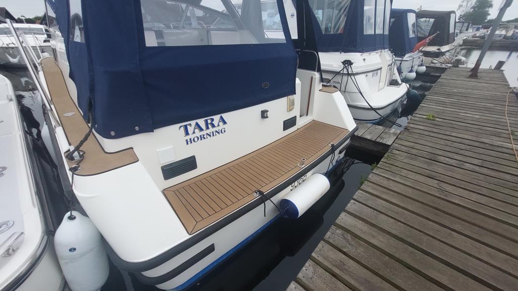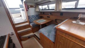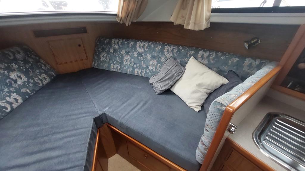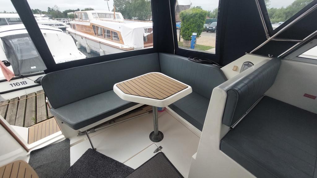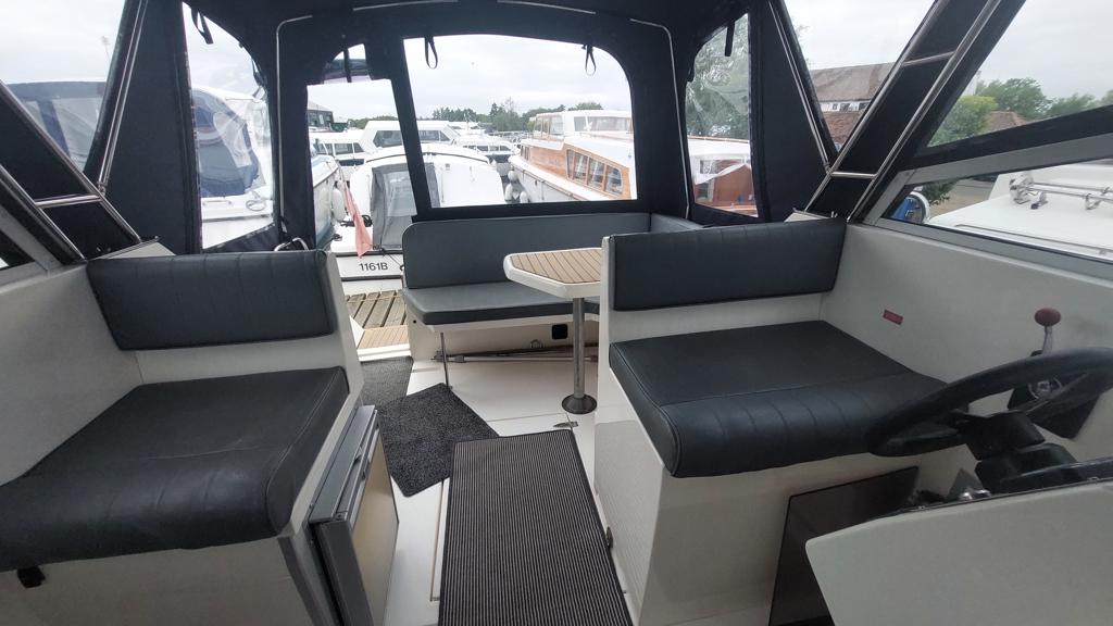Bounty Brister 27 – 1995. Single Nanni N4.150 37.5hp diesel engine through a shaft. 2 berth accommodation with a single toilet and shower compartment. Specification to include; bow-thruster, warm air heating, battery charger, folding screens, full canopy, electric windlass, speed and depth log. “Tara” is a very nice and well maintained example of these ever popular motor cruisers. She boats a very comprehensive specification and folding windscreens give her a low air-draft allowing exploration of most of the Norfolk Broads. BSC 06/29