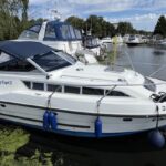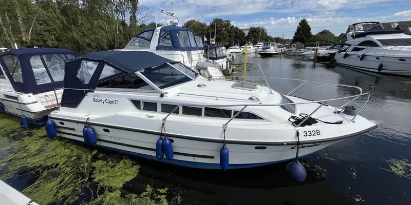Bounty Brister Capri 27 – 1994 – Powered by a Nanni 4.150HE 37.5hp diesel engine through a shaft. 2 berth accommodation with 1 x toilet/shower compartment. Specification including bow-thruster, warm air heating, battery charger, shore power, folding screens, full canopy and folding arch, Raymarine Speed & depth log, BSC 06/27. An ever popular design of river cruiser with easy transom access and quality fitout by Brister Craft, coupled with a low air draft making her fantastic boat to explore the inland waterways.