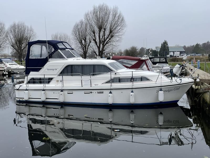 BOUNTY SOVEREIGN 34 – 1999 – Powered by a single Nanni 135hp diesel through a shaft – 6 berth accommodation with two toilets and two showers – Specification to include; Electric windlass, shore power supply, bowthruster, warm air heating, generator, holding tank, VHF, GPS. Synthetic teak laid cockpit and folding windscreens. BSC 07/2025. A well specified, well presented example of these popular cruisers. Single diesel economy and shaft configuration. The Sovereign 34 lends itself perfectly to extended cruising of the inland waterways!