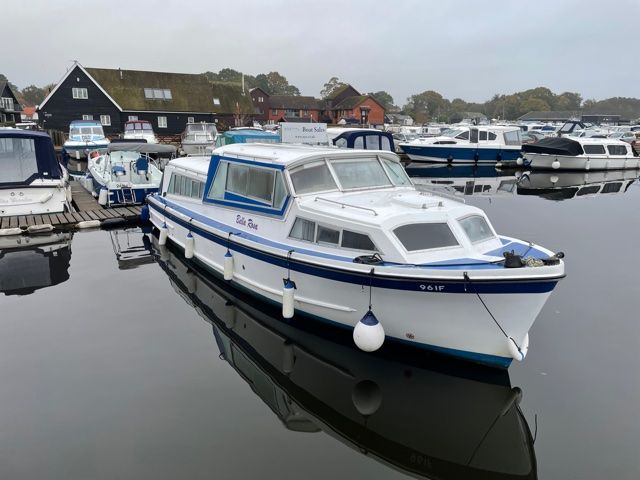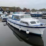 BOURNE 35 – Circa 1984. 1.5 BMC 36hp Diesel Engine. 7 berths in two cabins, 2 x heads and 2x showers. Warm air heating system, full sliding wheelhouse roof, bow thruster, inverter, battery charger. This boat is beautifully presented with a low air draft ideal for river cruising.