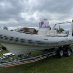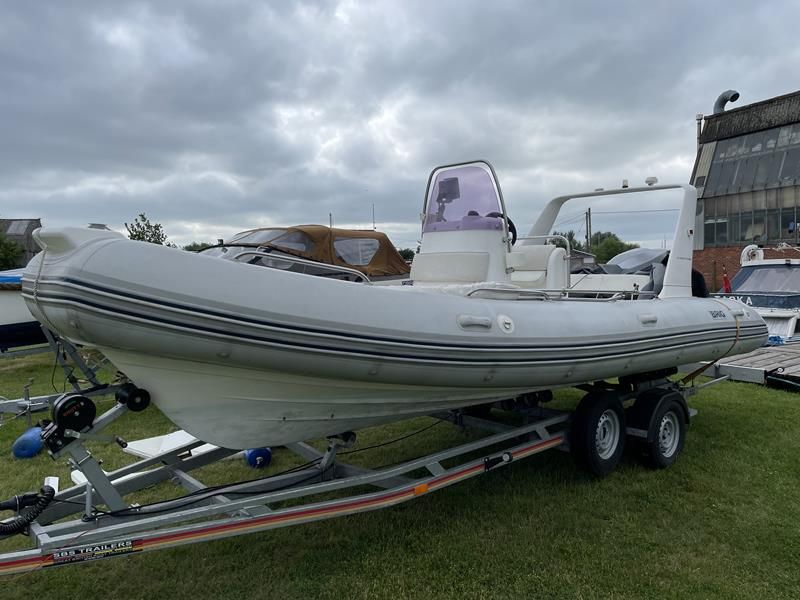 BRIG EAGLE 600 – 2005 – Powered by a single Mariner Optimax 135hp petrol outboard – Specification to include; Electric start and drive tilt, VHF, Eagle Sea Champ, 12v supply and socket, navigation lights, full all-over cover (new 2021), bimini, navigation lights. SBS R2/1500RL roller trailer. 2021 A fun rib perfect for enjoying summer days on the coast!