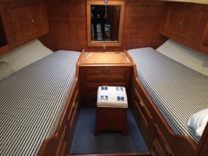 BROOKE MARINE – 1989 – Powered by twin Ford Sabre diesels. 6 berths with two toilets and showers. Big Spec includes holding tank, generator, bow and stern thrusters, warm air heating, air conditioning, and shore power supply with battery charger. Renowned Sea Keeping qualities. This boat was one of the last built by Brooke Marine and was fitted out by Whisstocks of Woodbridge. Current owners have owned her for 10 years cruising the Norfolk Broads. Boat Safety Certificate until August 2022.
