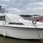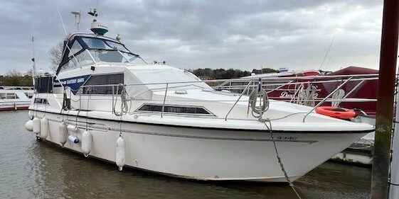 Broom 10/70 – 1988 – twin Volvo TMD41A 150hp diesels through shafts – 6 berth accommodation with two toilets and shower. Specification to include; Bow thruster , warm air heating, , shore power, fixed trim tabs , rudder indicator, 2 x VHF’s , navico comprehensive nav system . Folding radar arch and screens for improved inland access. A well specified 10/70 presented in very good order. BSC 03/27. More photos coming soon