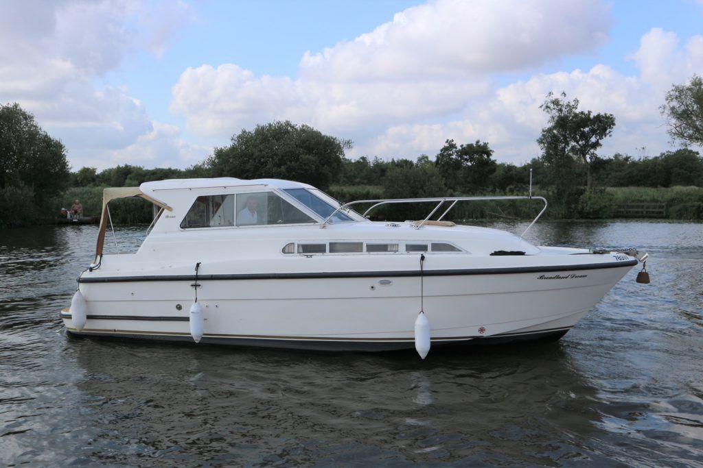 BROOM 29 – 1995 – Nanni 4.220HE 50hp diesel engine. 4 berth accommodation with 1 x toilet to holding tank & shower. Galley with 2 burner gas hob, oven, sink & electric fridge. Spec including bow thruster, Eberspacher warm air heating, shore power, electric windlass, battery charger, BSC 08/2021. A nicely presented example of these popular cruisers with comfortable accommodation, ideal for all season cruising. NYA Stock – 3 month engine & gearbox warranty.