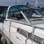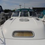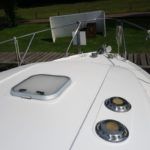 BROOM 29 – 2002 – Single Nanni 62HP Diesel Engine. 4 berth with 1 toilet to holding tank and 1 shower. Bowthruster, Warm air heating system, Shore power, Battery charger, Manual anchor winch, Folding windscreens, Inverter, Teak flooring to cockpit and bathing platform, Folding radar arch. BSSC until 2020. 2 owners from new and exceptionally well cared for. A low airdraft cruiser making family boating on the inland waterways a dream.