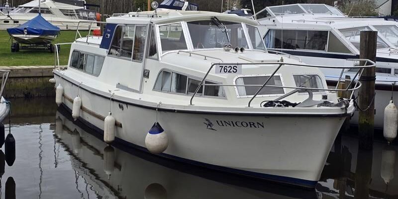 BROOM 30 – Circa 1979 – 2x Nanni N4.50 diesel engines (New 2023). 6 berth accommodation with a toilet and shower compartment. Specification to include; battery charger, electric anchor winch, warm air heating system, shore power, electric toilet, water heater, GPS and more. A comfortable all year round family cruiser with the valuable addition of two brand-new Nanni diesels! NYA Stock – Sold with 3 month engine and gearbox warranty.