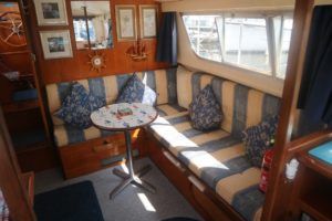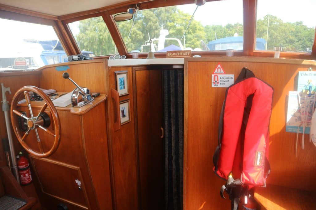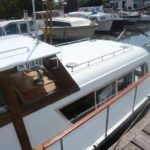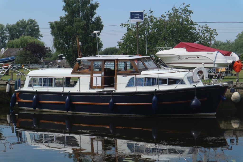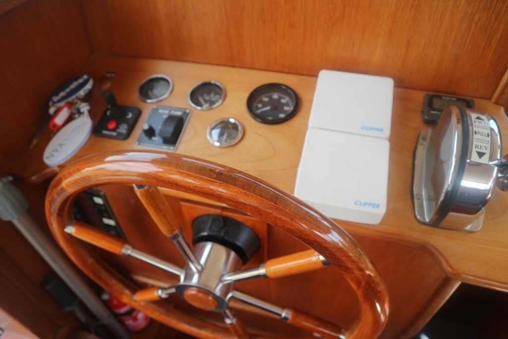 BROOM 30 SKIPPER – 1981 – Powered by a single Ford FSD 60hp diesel. 4 berth accommodation with one toilet and one shower. Specification to include; Maxpower bow thruster, Wallas warm air heating, holding tank, 200w solar panel, full galley facilities and shore power supply with battery charger and 240v supply. Used to cruise all across the Broads network in her current ownership, clearly very well loved by her current diligent owners. A well specified classic Broom 30, ideal for extended inland cruising!