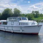 Broom 30 Skipper – 1977 – Single BMC 1.5ltr diesel engine through a shaft. 4 berth accommodation with a single toilet/shower compartment. Specification to include; warm air heating, calorifier, folding screens full galley, shore power; “Complete Chaos” is a well cared for, comfortable motor cruiser. Folding windscreens and a removable wheelhouse roof give her a low air-draft allowing access under most Broads bridges. Comes with an NYA 3 month warranty on engine and gearbox. More pictures to follow. BSC 10/06/27.